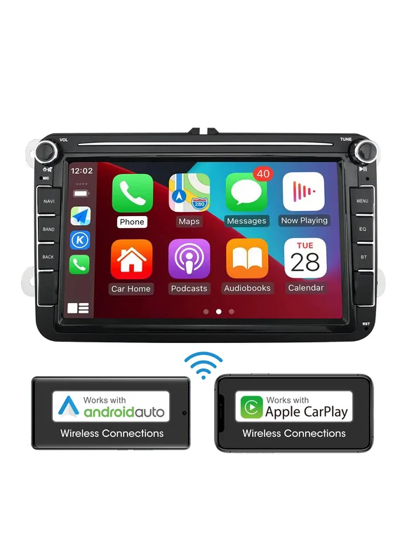 8 inch Double Din Car Stereo,Touch Screen Car Receiver Support Wireless CarPlay,Android Auto, WiFi,MirrorLink, AM/FM Radio, Linux Operating System