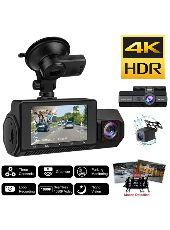 Herunwer Wholesale HDR In-vehicle Camera 4K Three-record Driving Recorder WiFi Infrared Night Vision GPS Track Three-lens Reversing Image Car Recorder