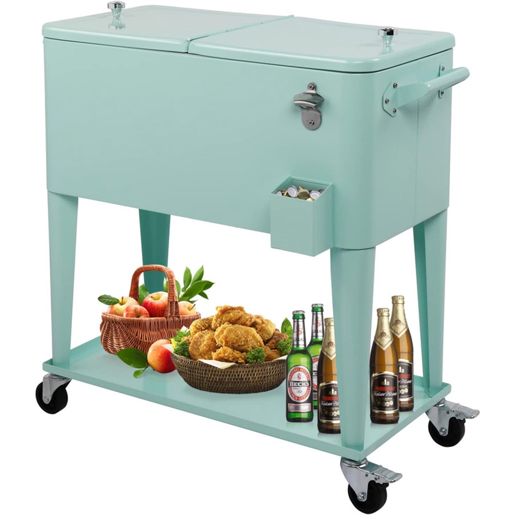 80 Quart Rolling Ice Chest Cooler Cart,Patio Backyard Party Drink Beverage Bar Stand Up Cooler Trolley with Ice Scoop