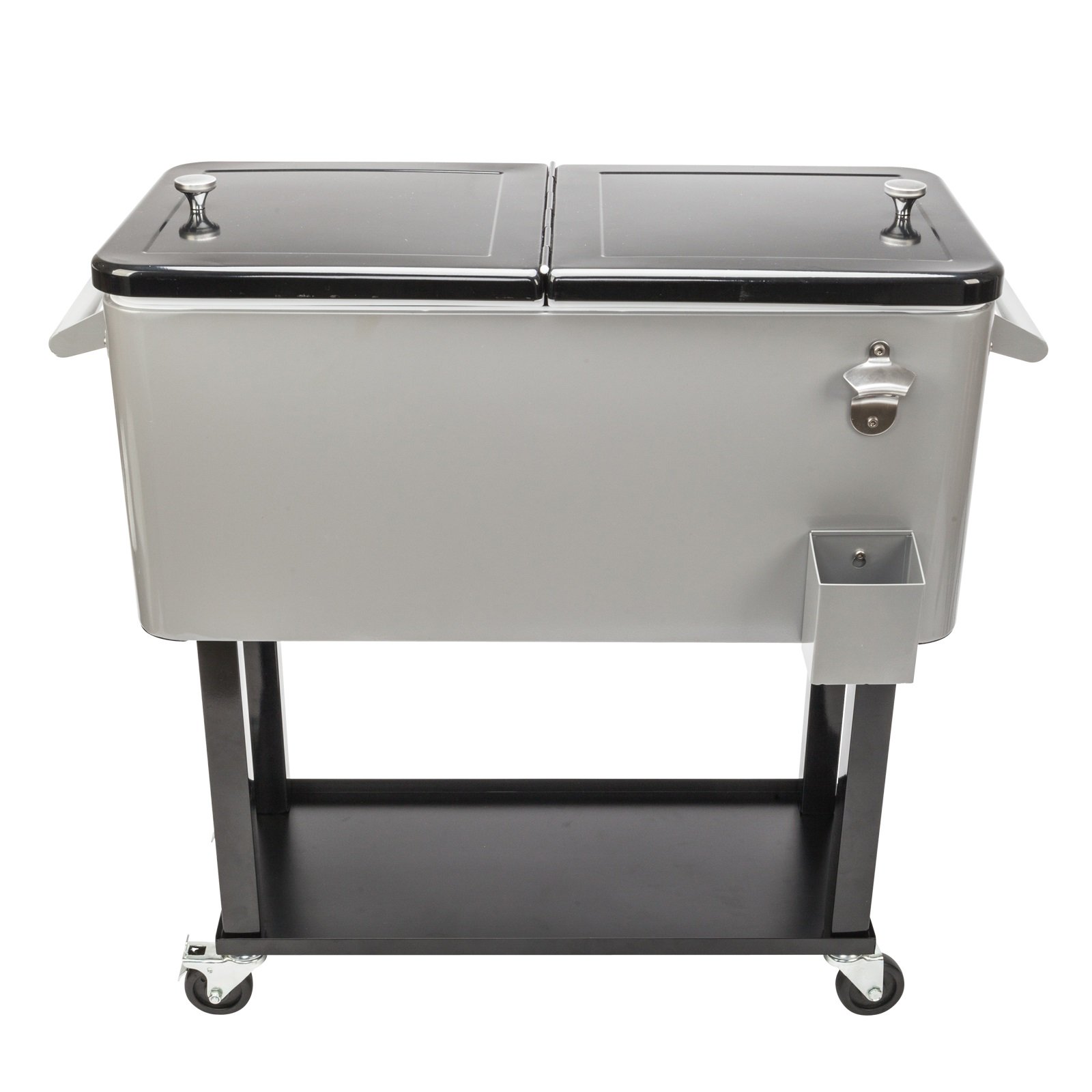 80 QT Portable Patio Party Bar Cart, Rolling Cooler Cart Ice Chest with Shelf and Bottle Opener, for Outdoor Patio Deck Party Party Bar Cold Drink Beverage Cart