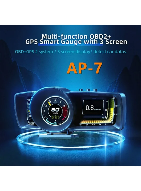 Farfi AP-7 OBD GPS Smart Gauge HUD Display with Alarm Ambient Light LCD OBD2 GPS Speedometer for Cars