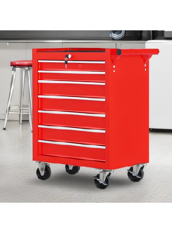 7-Drawer Rolling Tool Box, Multifunctional Tool Chest Garage Tool Storage, Metal Tool Cart Organizer on Wheels, 450LBS Weight Capacity