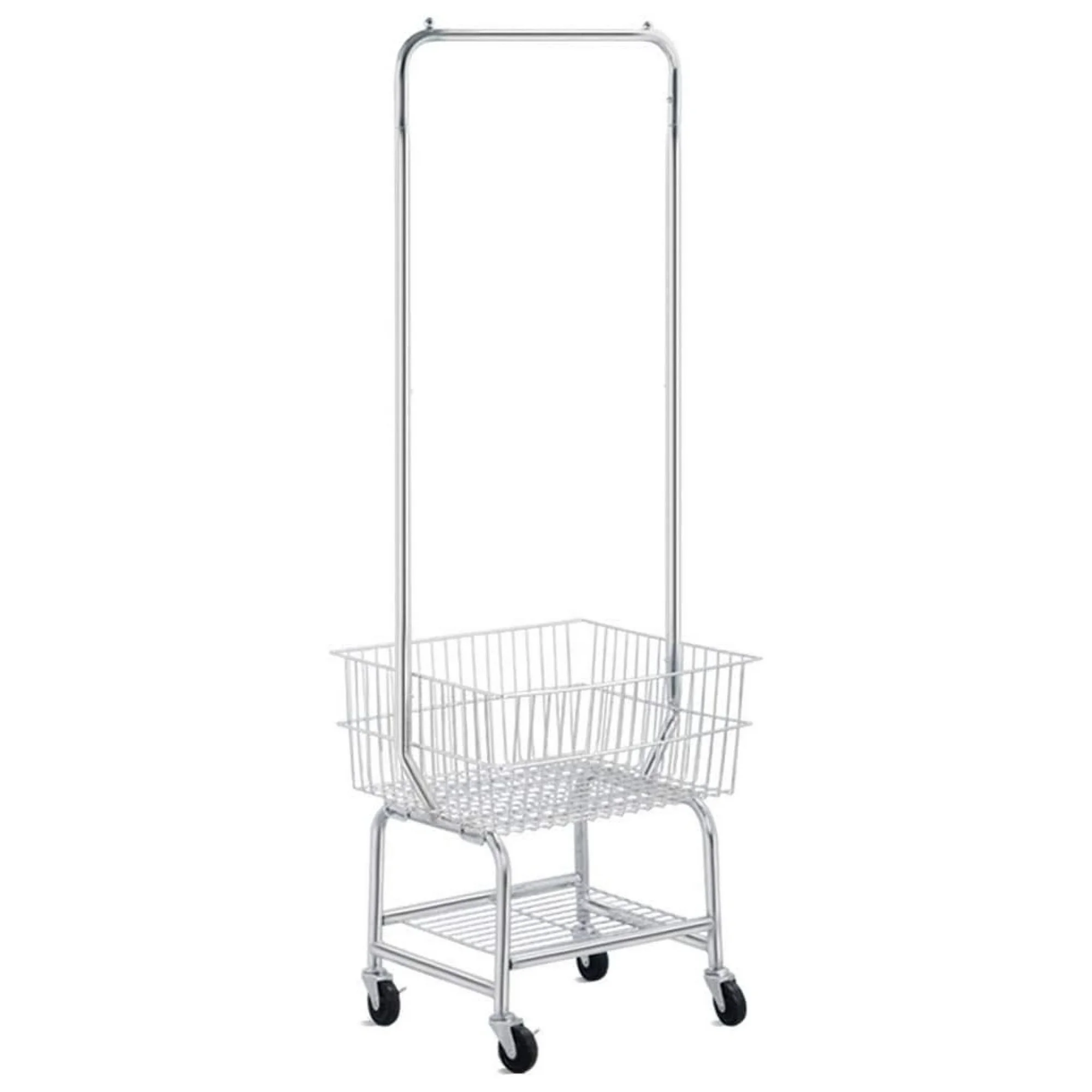 Zengpin Standard Commerical Laundry Bulter Rolling Laundry Cart with Hanging Bar, Silver