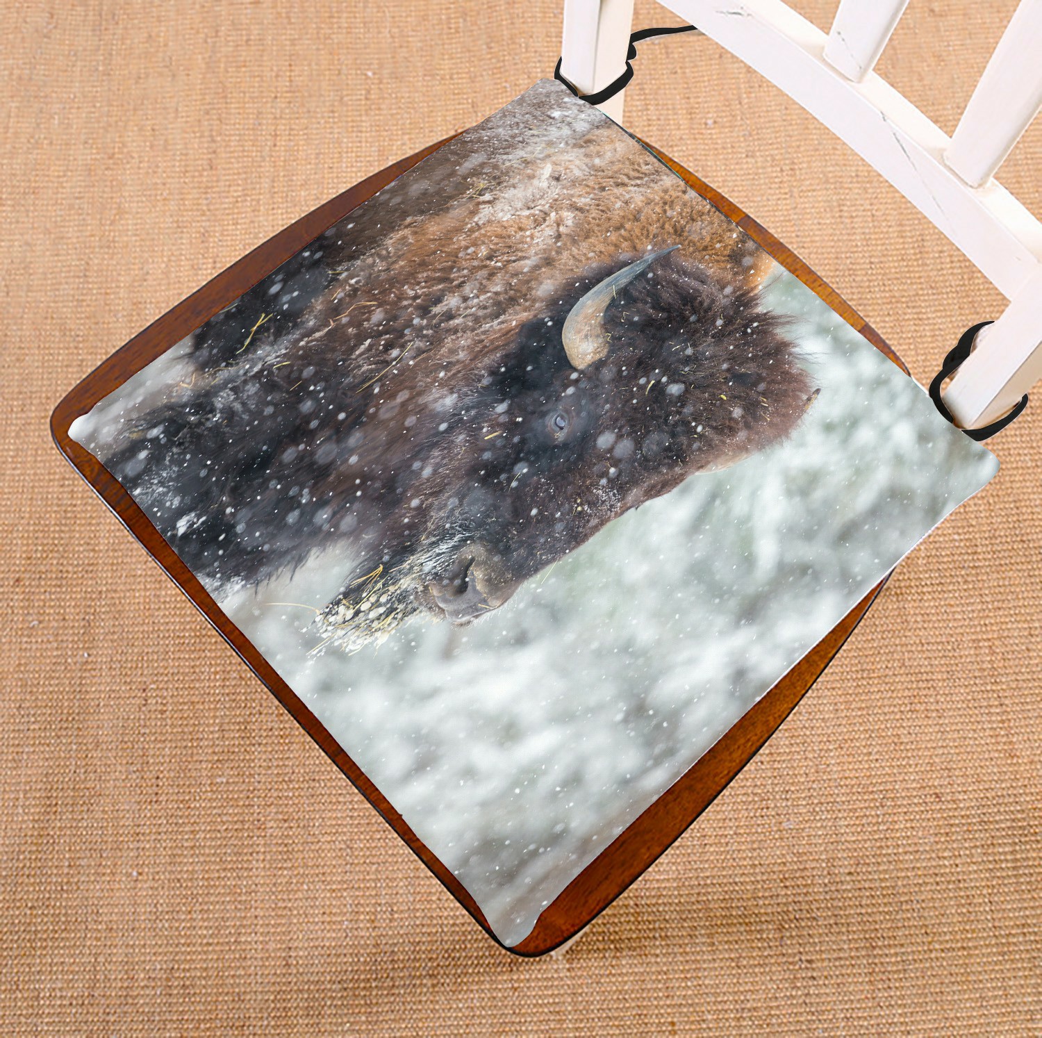 ECZJNT American Bison Or Buffalo Resting In A Snow Storm seat pad chair pads seat cushion 16x16 Inch