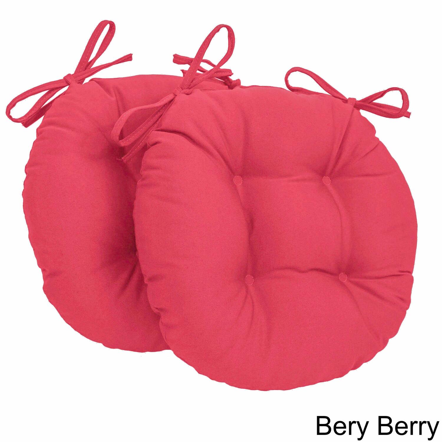Blazing Needles 16 in. Solid Twill Round Tufted Chair Cushions, Bery Berry - Set of 2