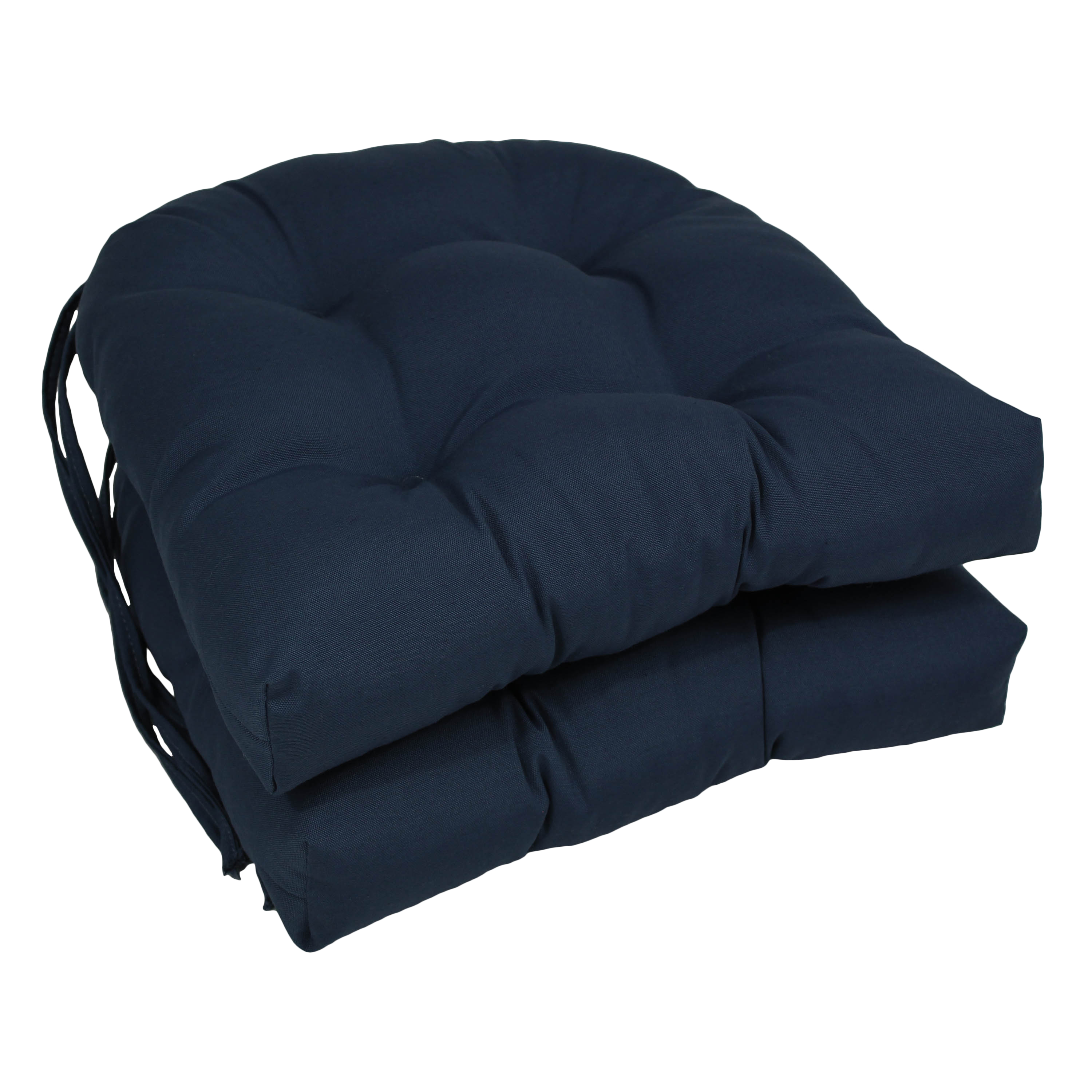 Blazing Needles Solid Twill U-Shaped Tufted Chair Cushions (Set of 2), 16", Navy