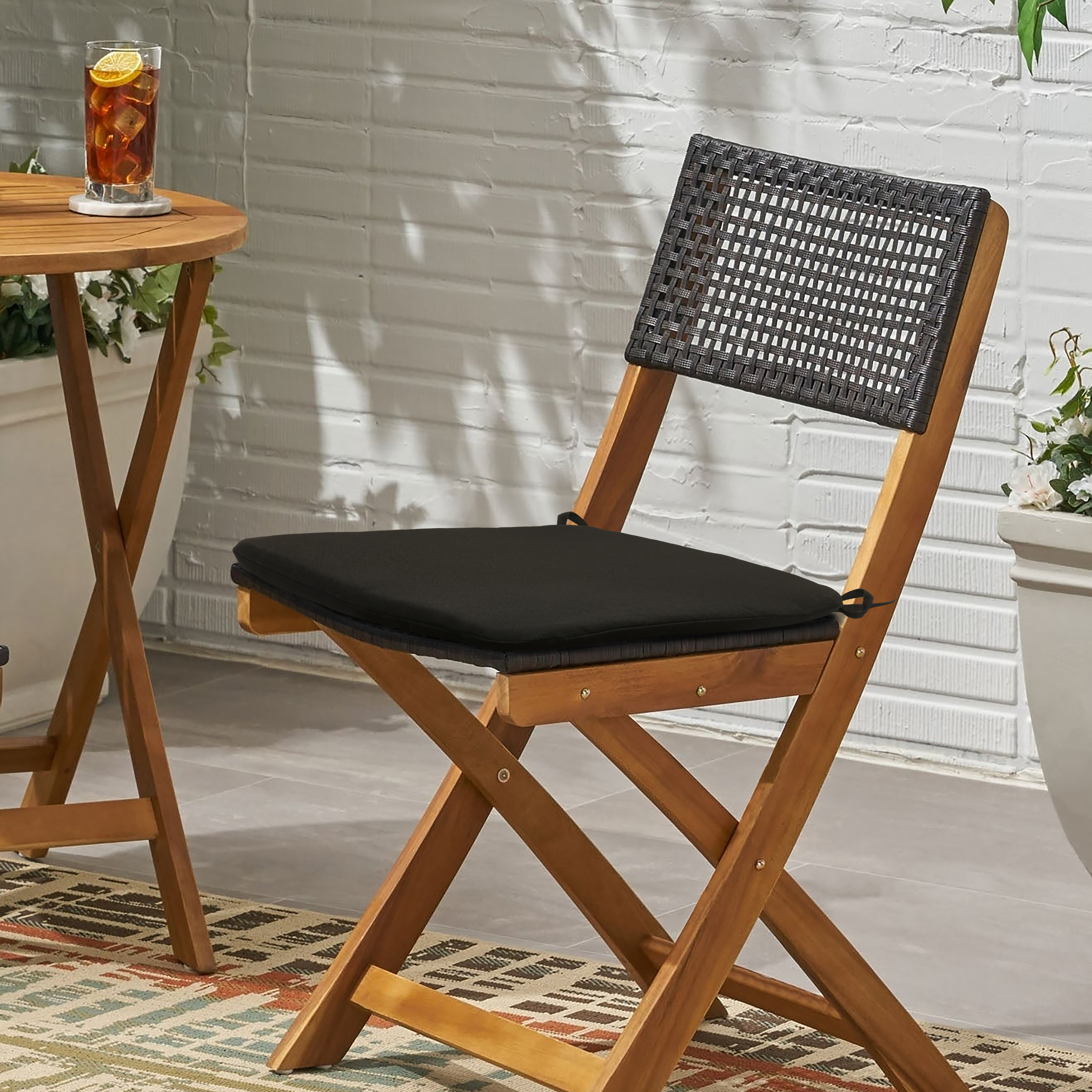 Outdoor Decor Floral Bistro 2 Pack Chair Cushion Pad, Black, 17" x 17"
