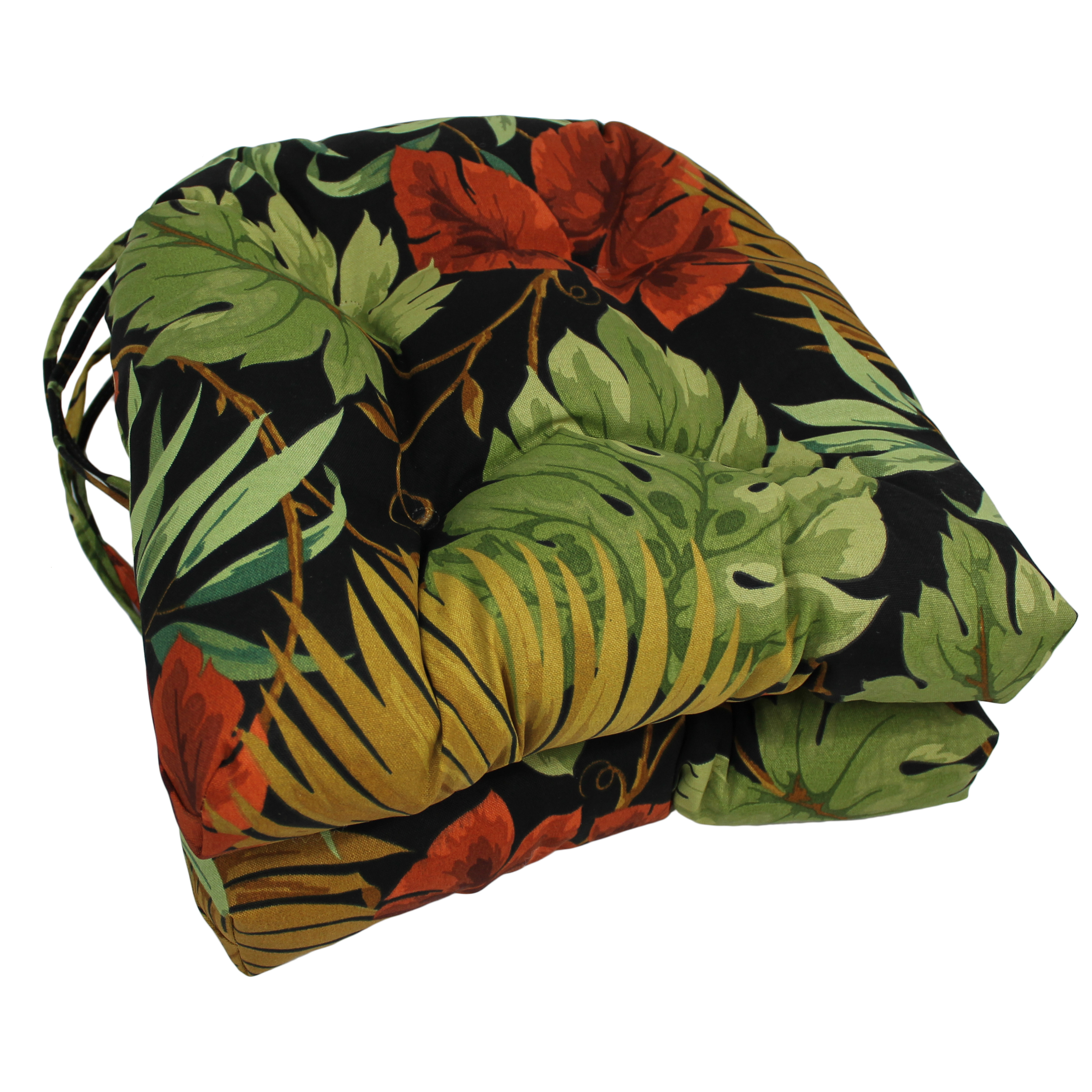 Blazing Needles 16 in. Spun Polyester Patterned Outdoor U-Shaped Tufted Chair Cushions, Tropique Raven - Set of 2