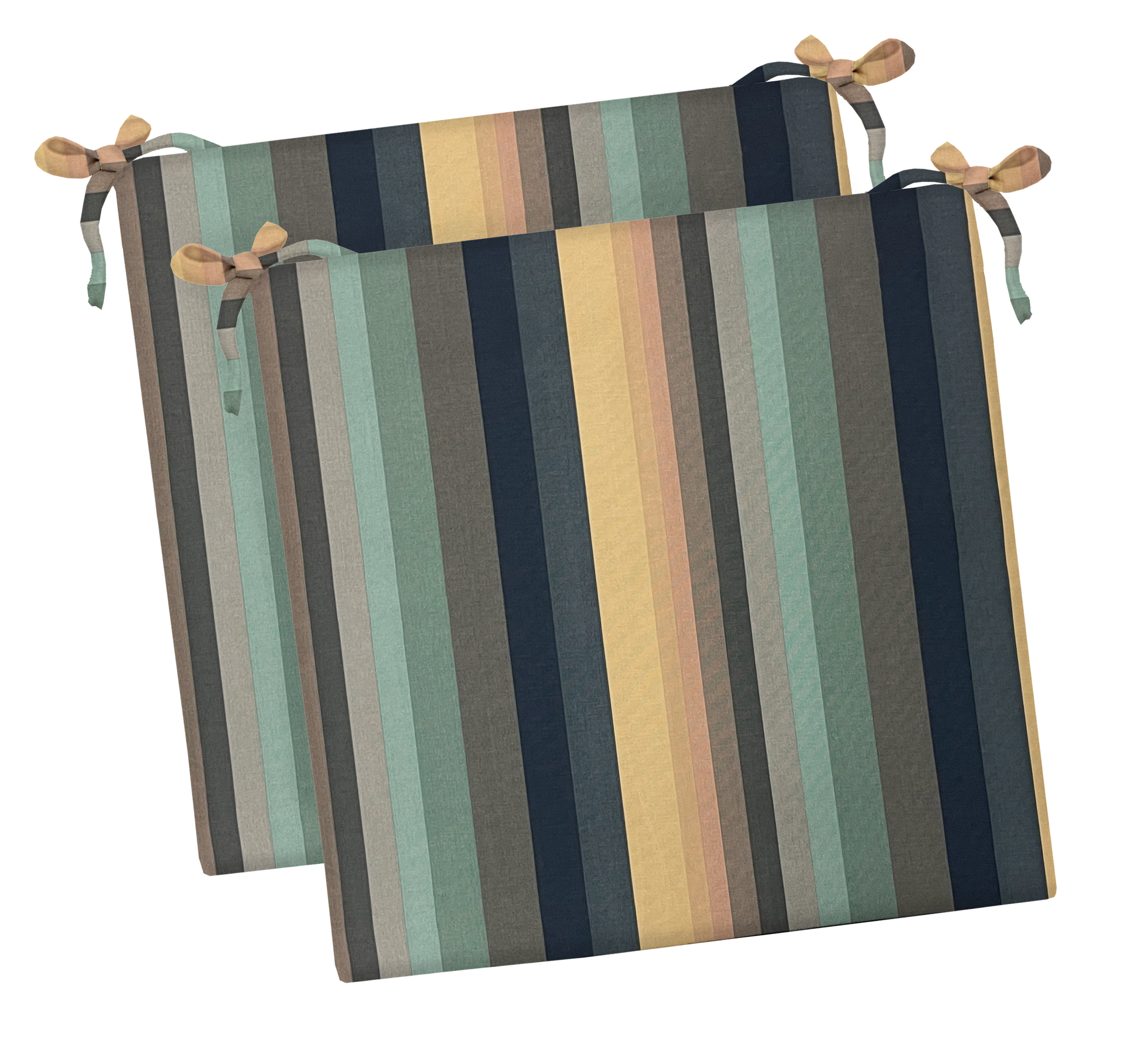 RSH Décor Indoor Outdoor Set of 2 Foam Dining Chair Seat Cushions, 19" x 19" x 3", Braymont Dune Blue Stripe