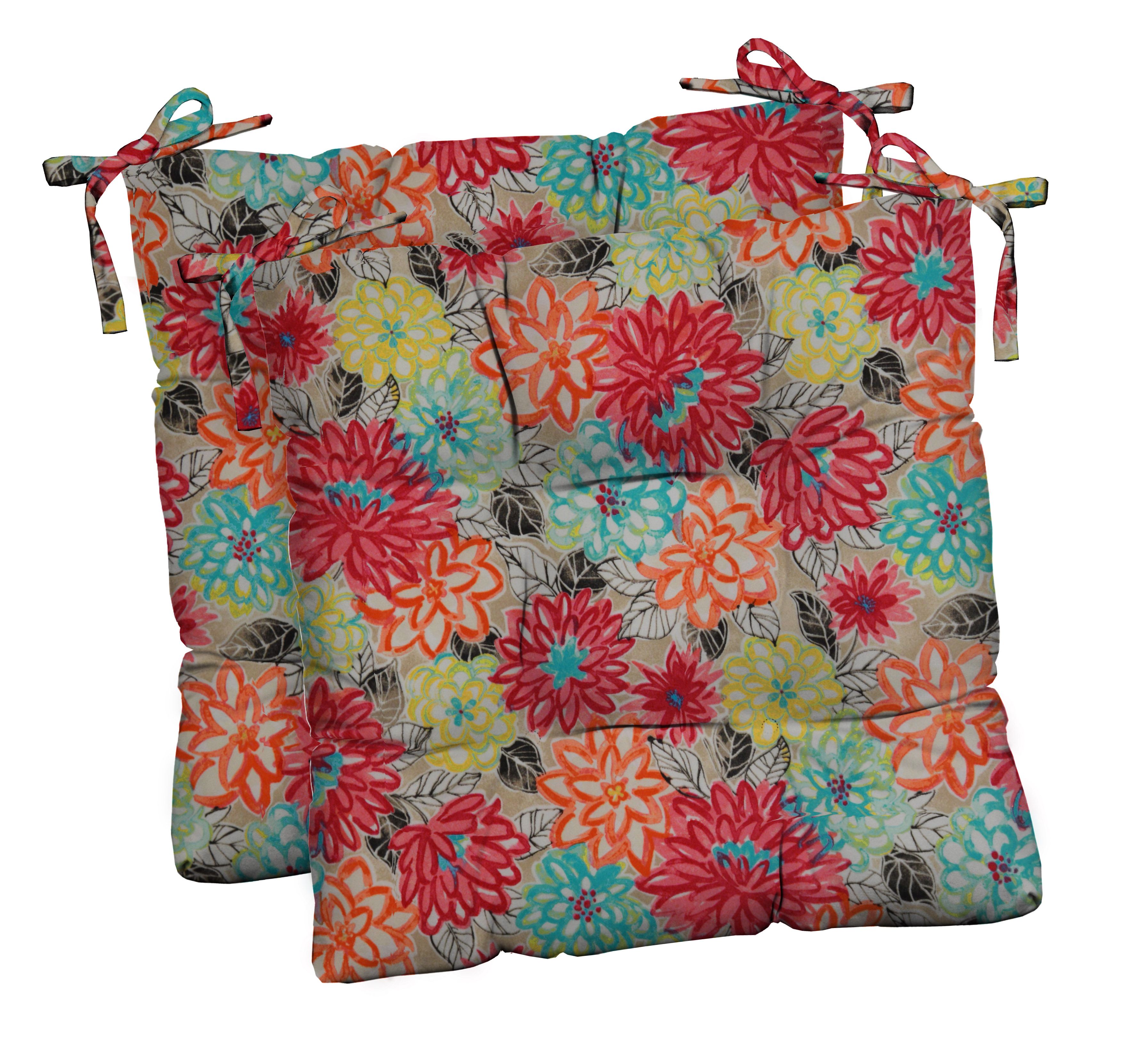 RSH Décor Indoor Outdoor Set of 2 Tufted Dining Chair Seat Cushions, 17" x 17" x 2", Artistic Floral