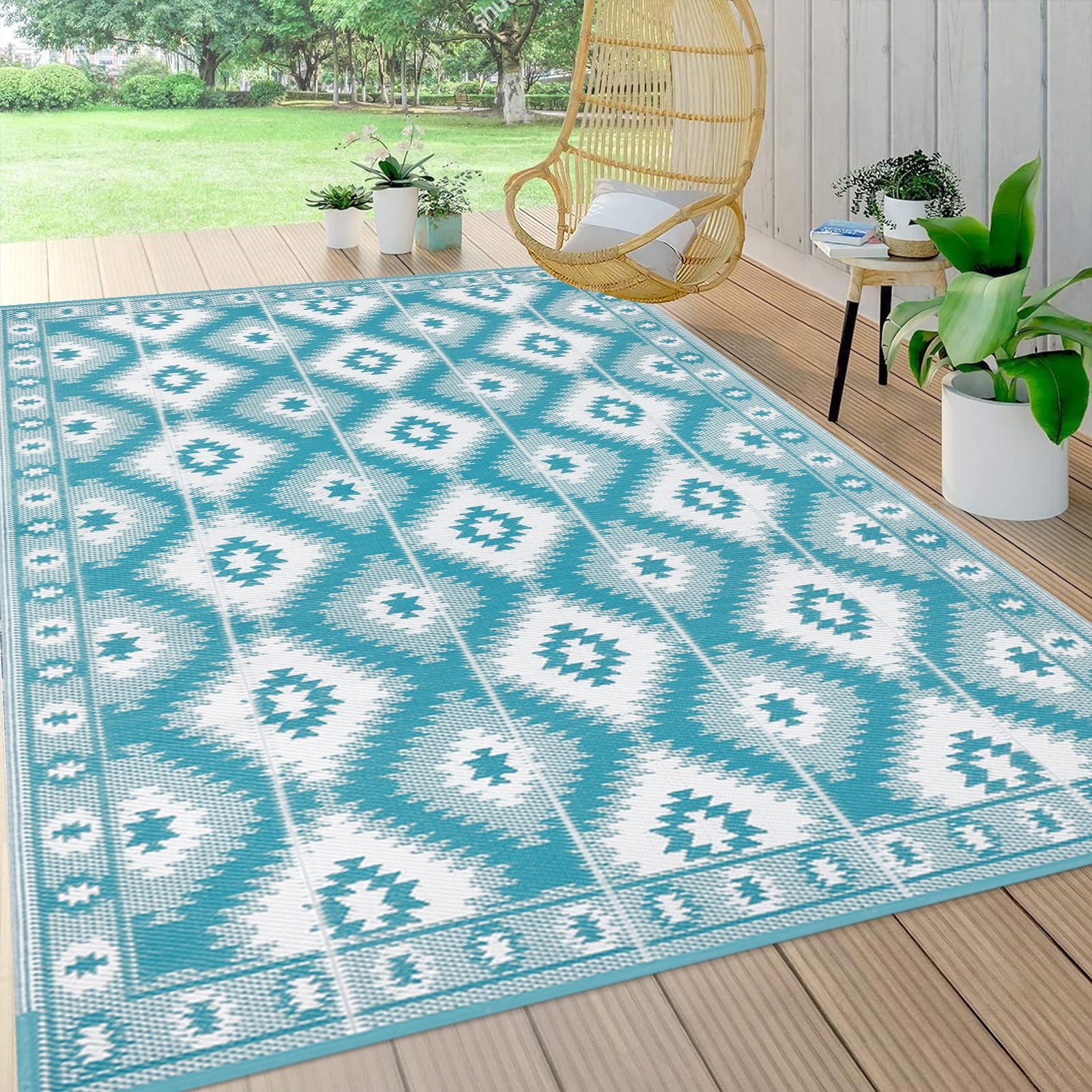 MeyJey Outdoor Rug, 6'x9' Reversible Waterproof Area Rug, Plastic Mat for RV Patio Camping, Aqua Blue