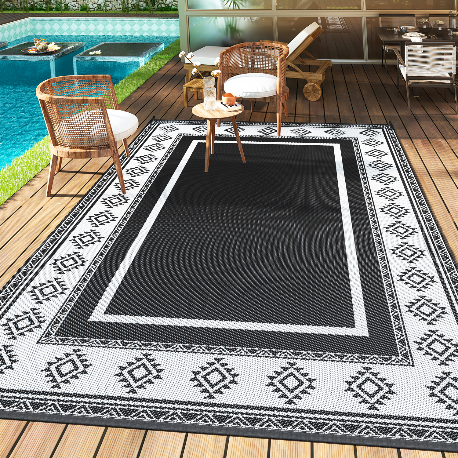 DEORAB Outdoor Rug for Patio Clearance,6'x9' Waterproof Mat,Reversible Plastic Camping Black & Beige