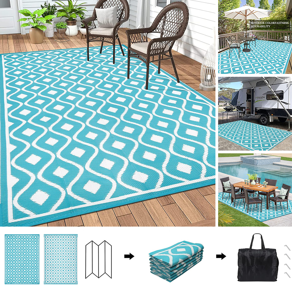 Findosom 6'x9' Large RV Outdoor Mat Reversible Outdoor Rug Patio Rug Plastic Straw Area Rug Mat Camping Rugs Modern Floor Mat for Outdoors, RV, Patio, Backyard, Deck, Picnic, Beach, Trailer Aqua Blue