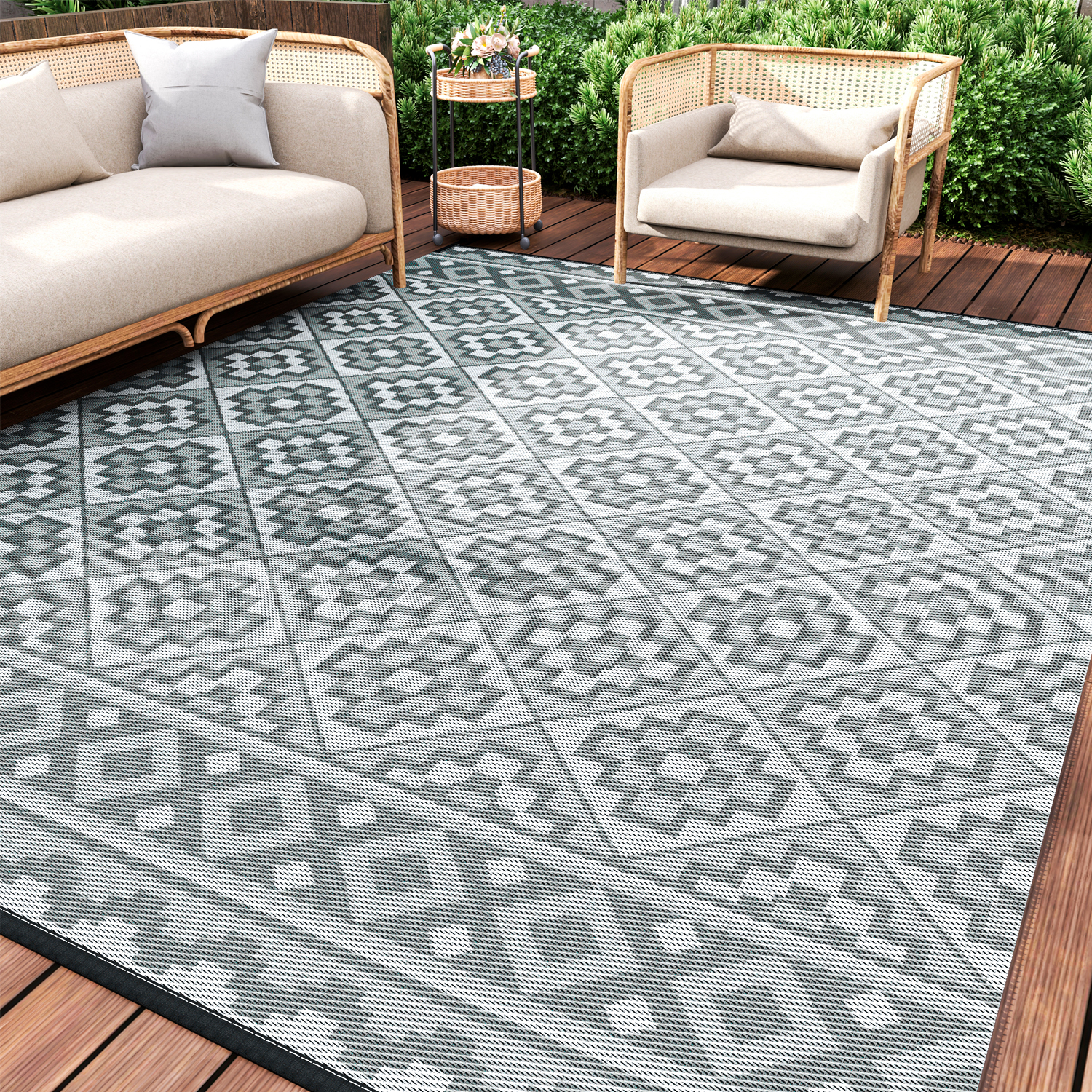 Outdoor Plastic Waterproof Rug 5'x 8' for Patio, Porch, Deck, Backyard, Balcony, Reversible, Geometric