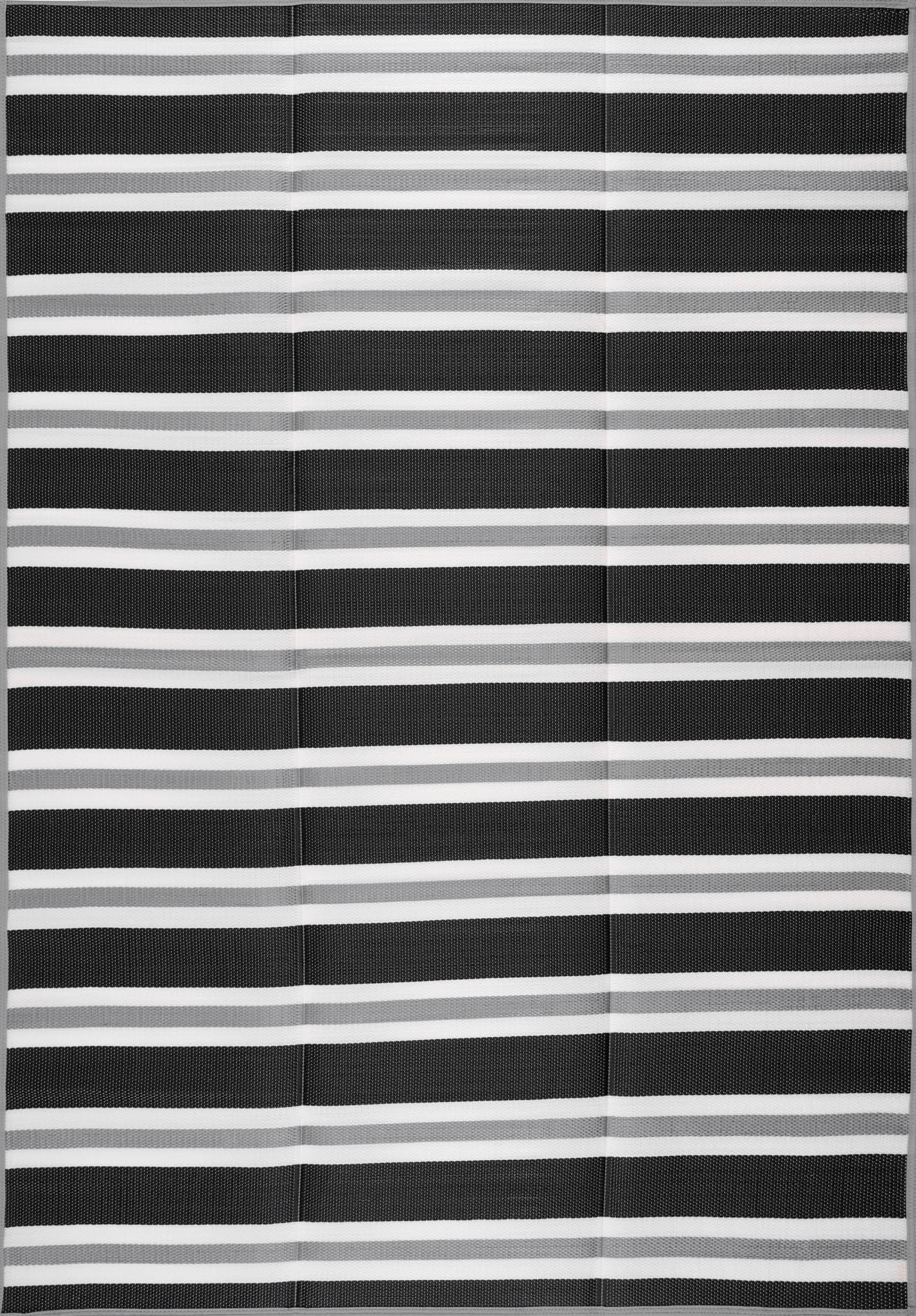 8x10 Waterproof, Reversible Plastic Straw Outdoor Rugs for Patios | Also for Camping, RV, Deck, Porch, Balcony, Camp, Patio | Black, Stripes | Size: 7'11'' x 10'3''