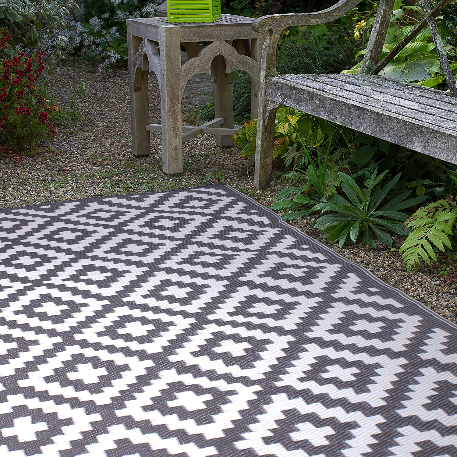 DEORAB Boho Outdoor Rug, Outside Waterproof Patio Plastic Clearance Reversible Rv, 6x9ft Grey White