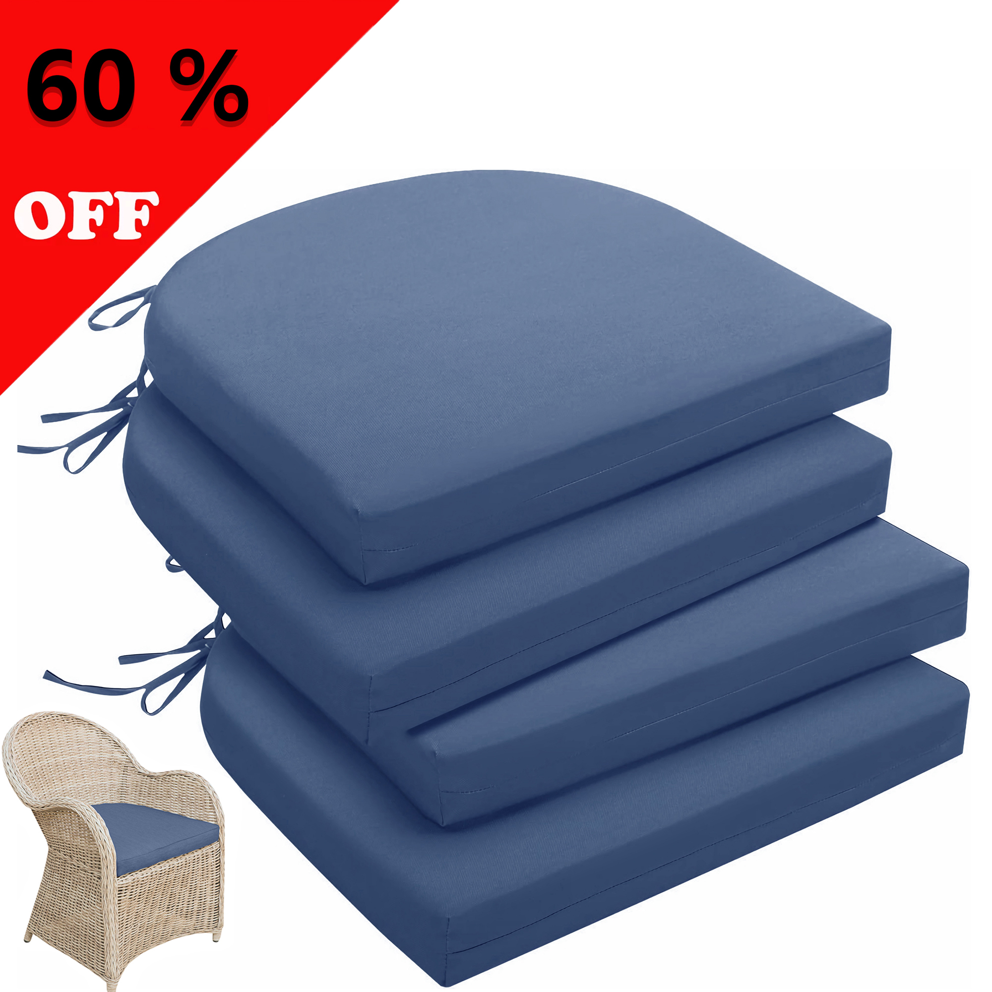 Unikome Outdoor Seat Pads Seat Cushions 4-Piece Solid Waterproof Patio Seat Chair Cushions 17 x 16 Rounded Square Patio Cushions, Navy Blue, Set of 4