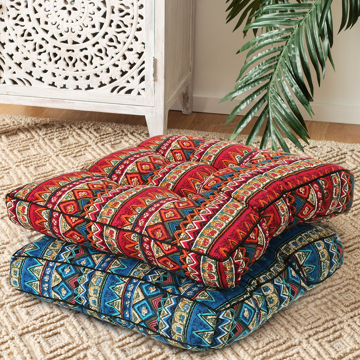 1PC Bohemian Outdoor Patio Chair Seat Pads, Square Floor Pillow, Kitchen Chair Seat Cushion Pads, Meditation Yoga Seating Cushion for Home Kitchen/Office/Garden Patio, 19.7" x 19.7" x 3.9"