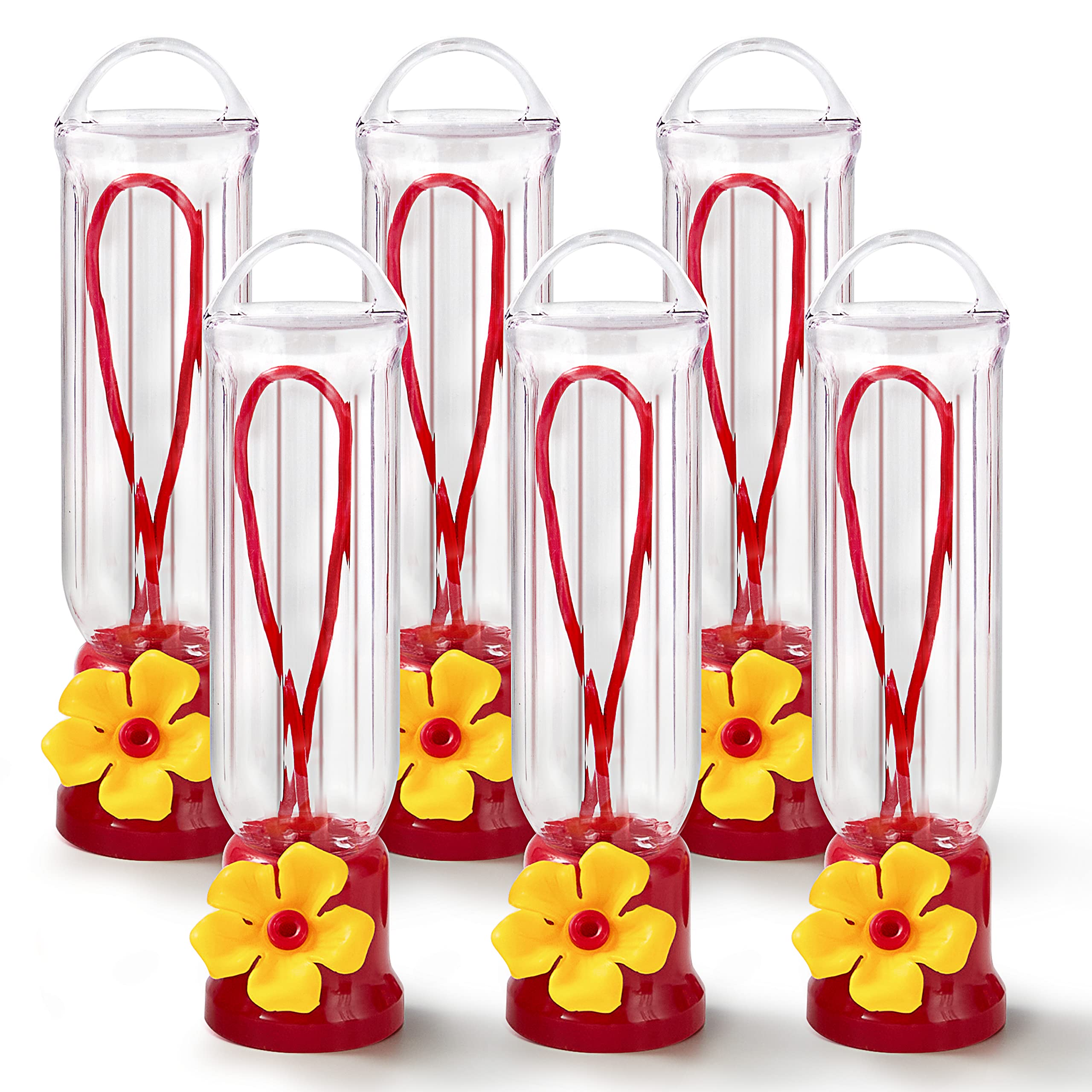 JOIEDOMI Set of 6 Mini Hummingbird Feeders with Hanging Wires, Transparent Outdoor Humming Bird Feeder Set with 3 Cleaning Brush for Patio, Outside, Lawn, Backyard, Garden, Easy to Clean