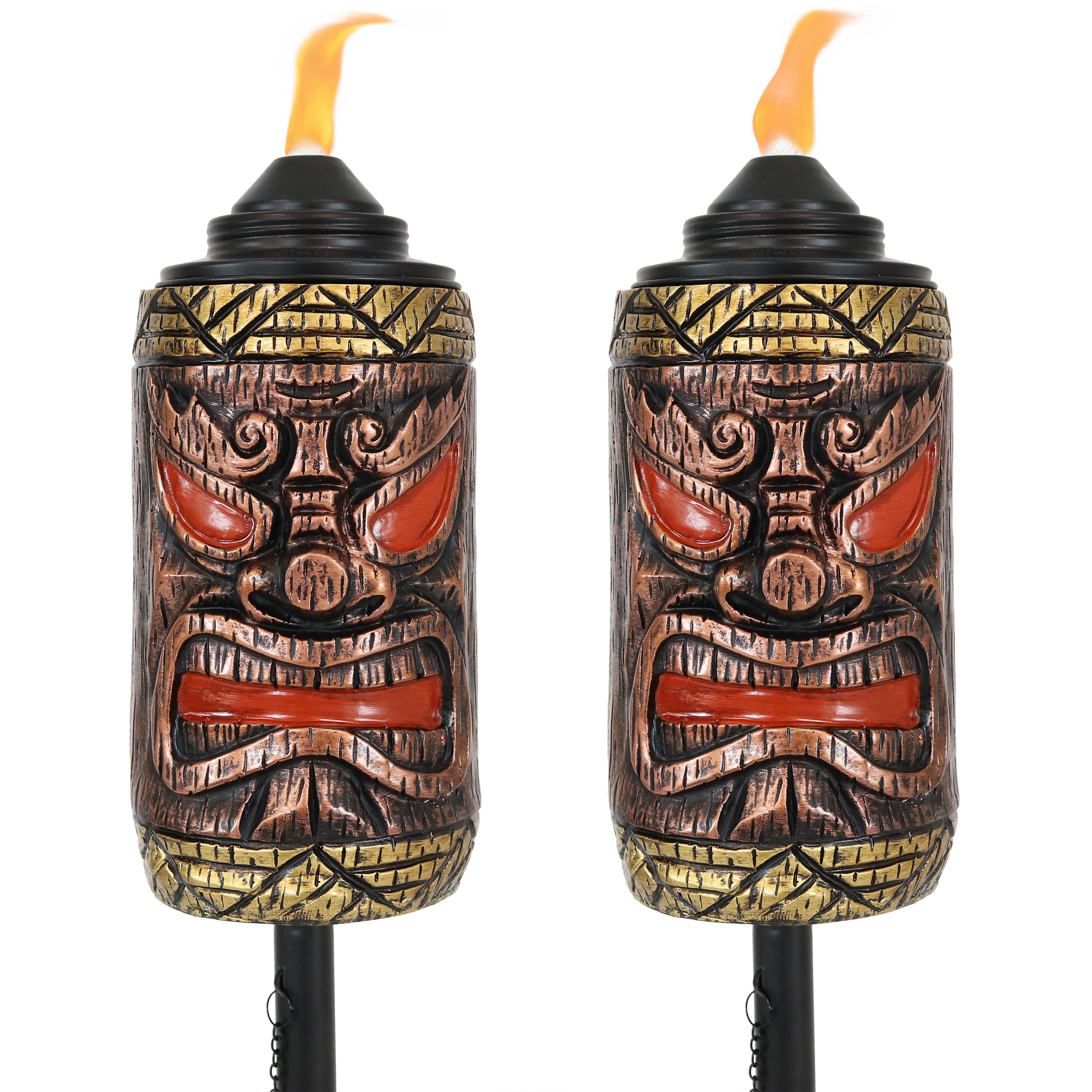 Sunnydaze Outdoor 3-in-1 Adjustable Height Tiki Face Patio and Lawn Torch Light Set - 2pk