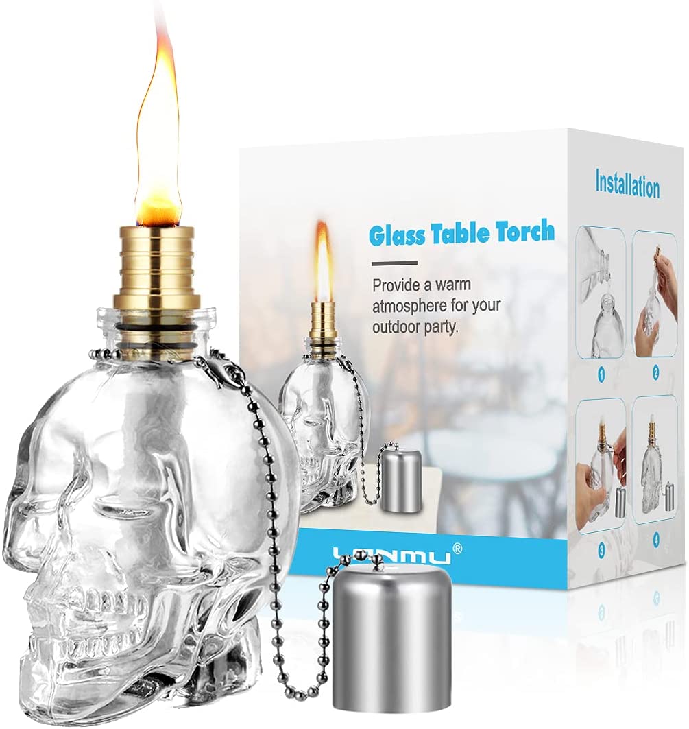 Molded Glass Table Torch - Outdoor Patio Garden Torch, Skeleton Tabletop Decor for Party/Thanksgiving/Christmas