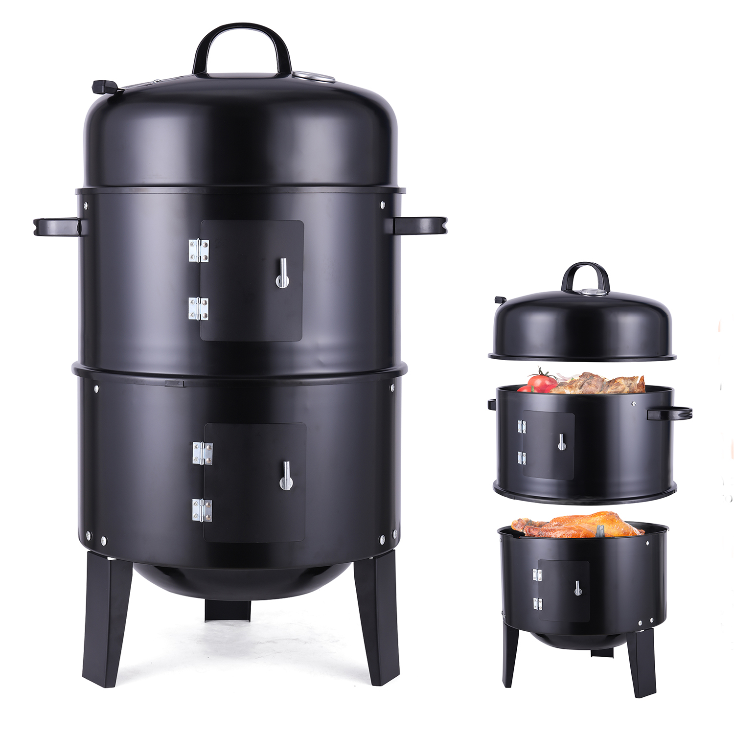 SHCKE 3 in 1 Vertical Charcoal BBQ Smoker Charcoal Grill Portable BBQ Grill Barbecue Camping Grill for BBQ, Patio, Outdoor Camping