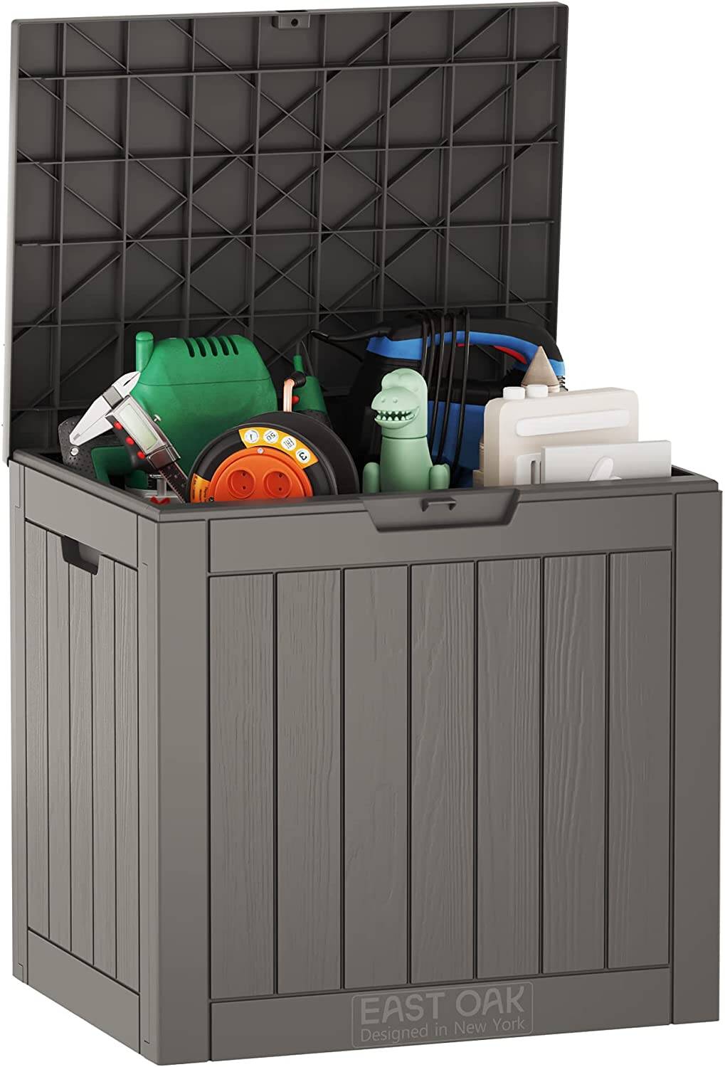 EAST OAK Deck Box, 31 Gallon Indoor and Outdoor Storage Box with Padlock for Patio Cushions, Outdoor Toys, Gardening Tools, Sports Equipment, Waterproof and UV Resistant Resin, Grey
