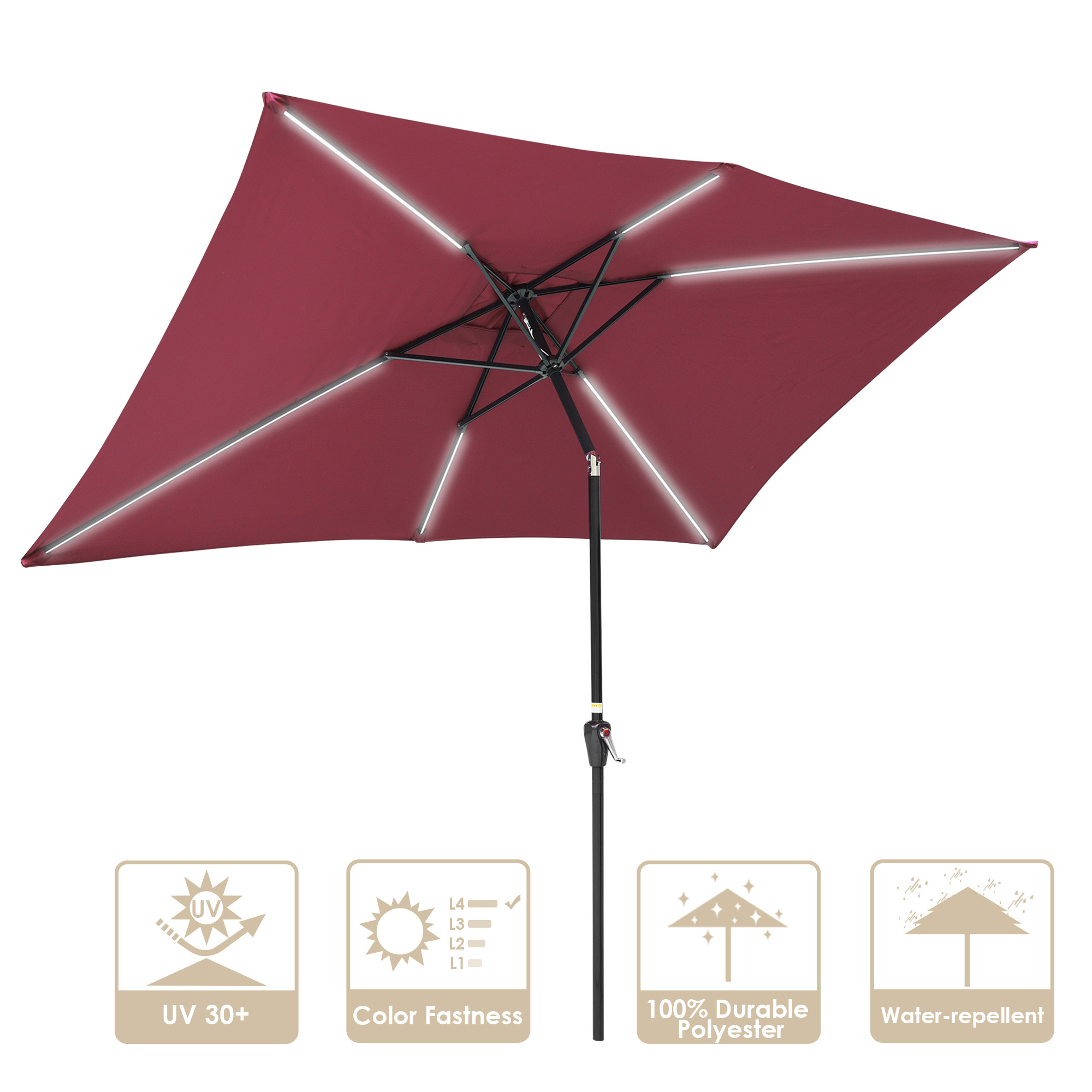 Yescom 10x6.5 Ft Solar Powered Patio Umbrella with Tilt and Crank Market Backyard Hotel