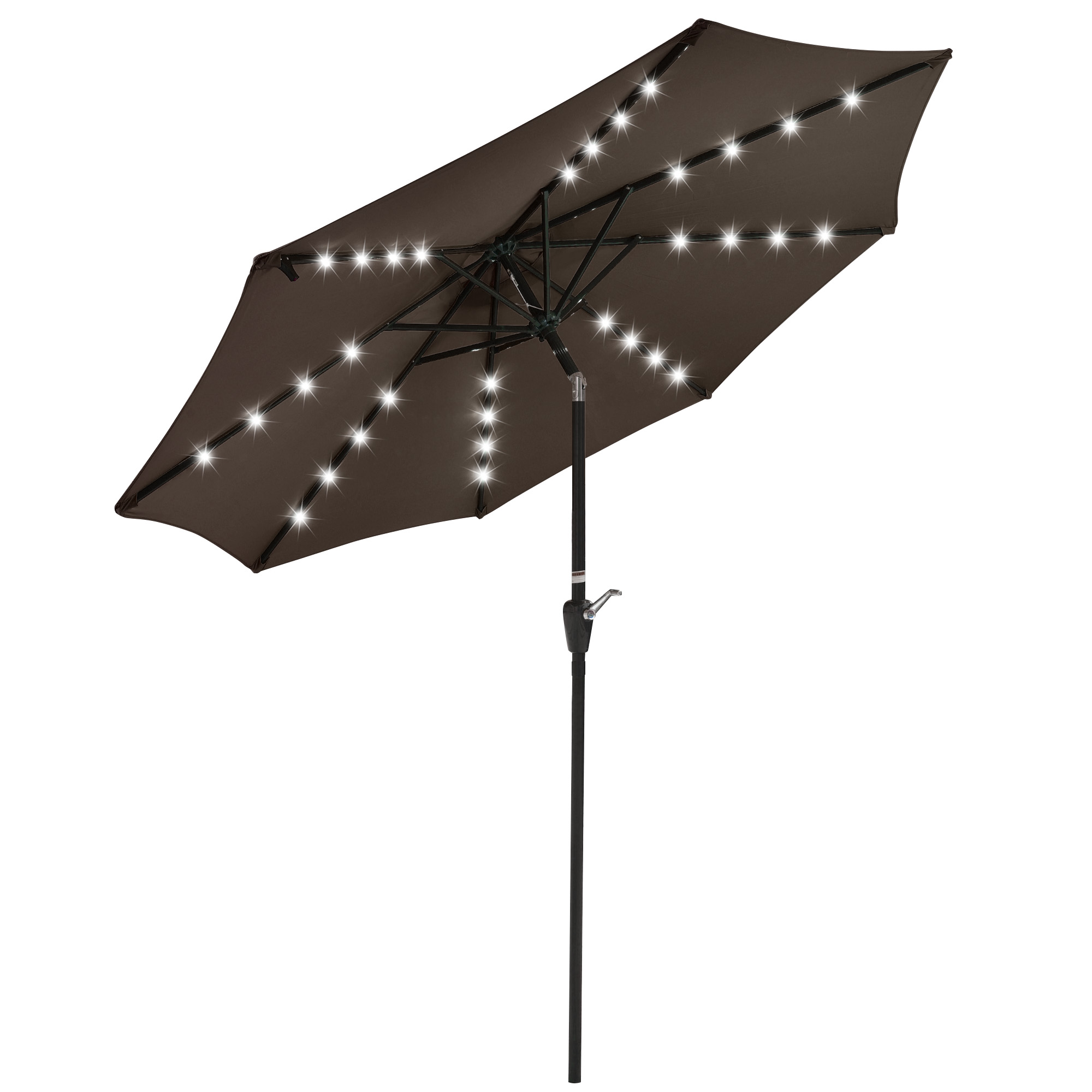 Yescom 9' Outdoor Solar Powered LED Umbrella 8 Ribs w/ 32 Lights for Patio Garden Deck Crank Tilt UV30 Chocolate