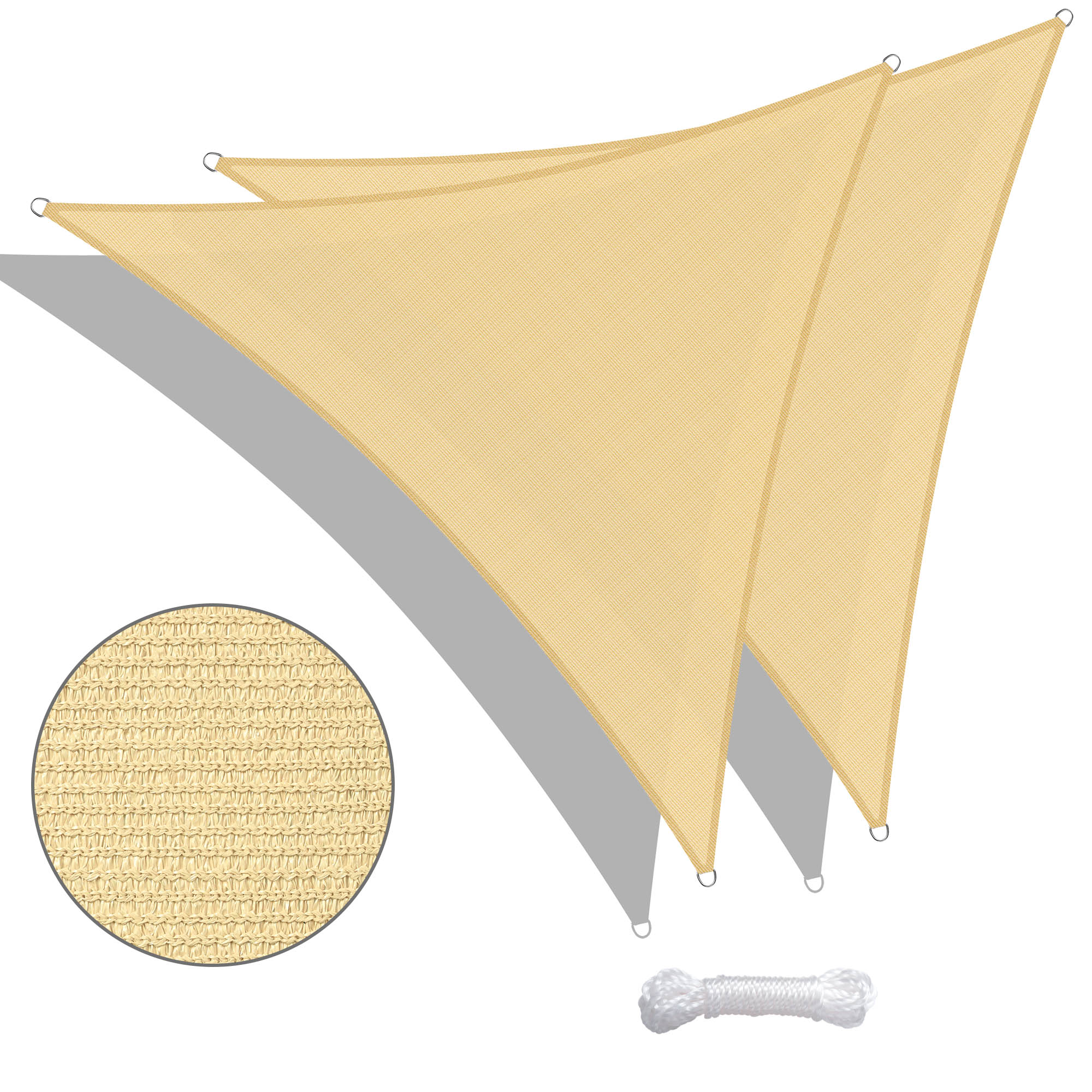 Yescom 2x 16.5' Triangle Sun Shade Sail Patio Deck Beach Garden Yard Outdoor Canopy Cover UV Blocking (Beige)
