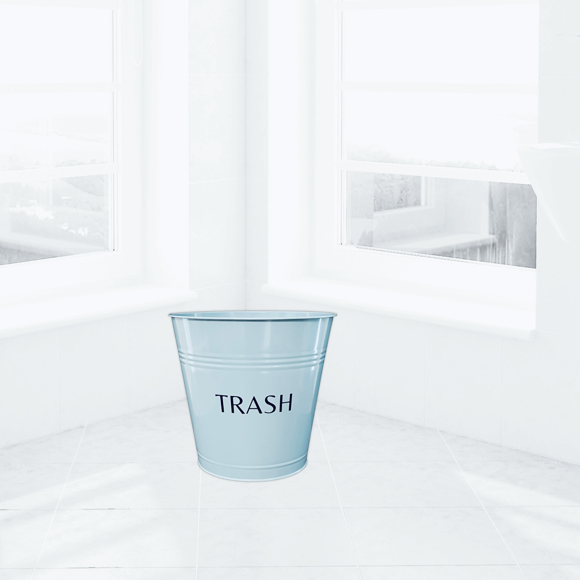 Blue Farmhouse Bathroom Trash Can, Small Trash Bin, Wastebasket Metal Garbage Can for Bathroom, Powder Room, Patio, Pool, Office, Dorm, Kitchen, 3 Gallon Trash Bin