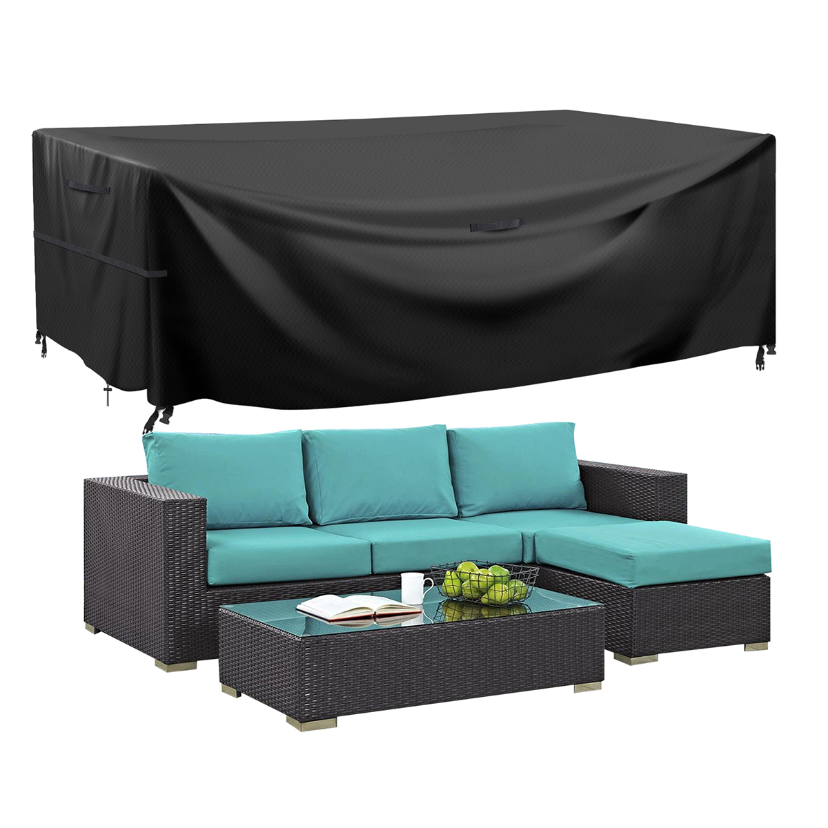 Patio Furniture Cover, King Do Way 600D Waterproof 79"L x 65"W x 31.5"H Patio Table Chairs Cover for 8-12 Seater Outdoor Furniture Set Windproof UV Protection Black