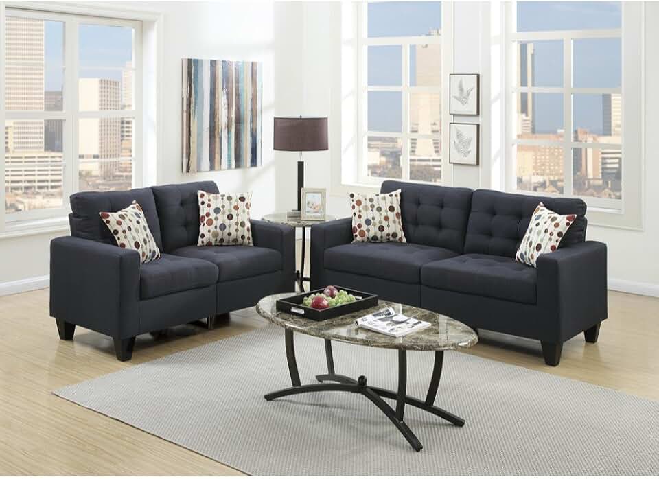 Benzara Linen Fabric 2 Pieces Sofa Set In Dark Gray