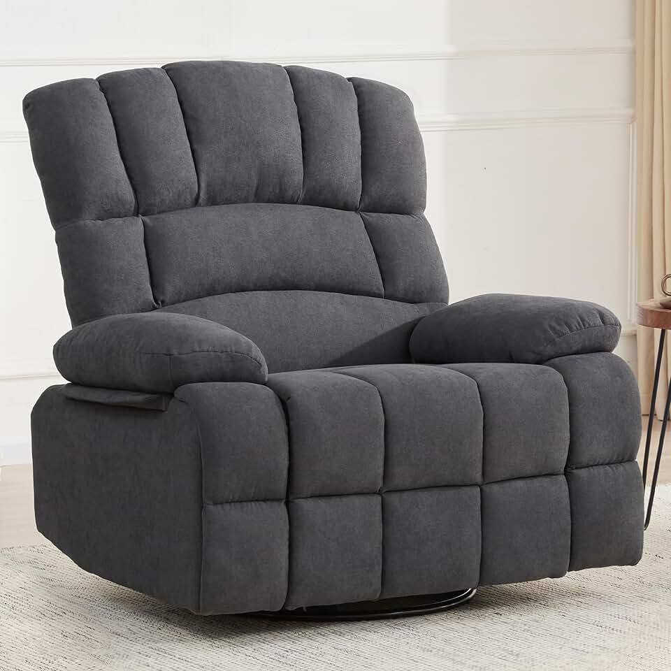 WILLOVE 360°Swivel Rocker Recliner Chair, Oversized Rocking Recliner Chair, Overstuffed Manual Nusery Glider Recliner, Lazy Boy Single Sofa Extra Wide Recliner for Living Room Dark Grey