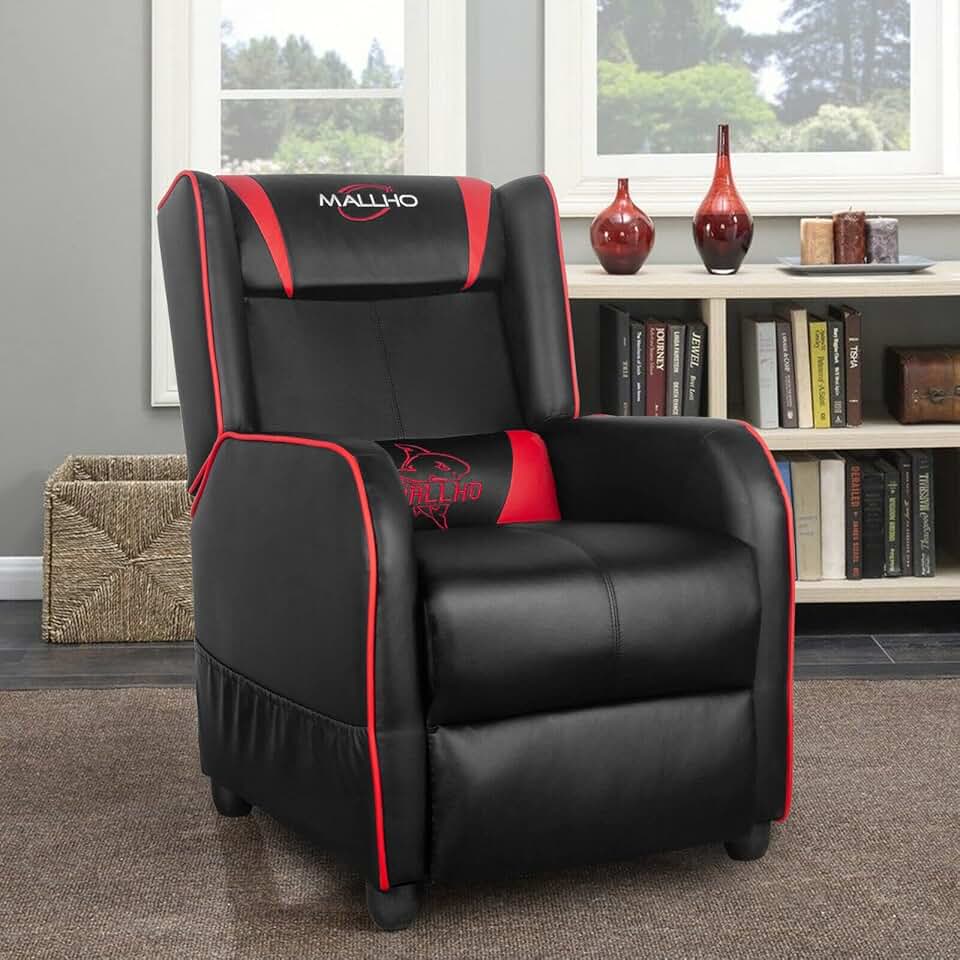 Luxurious Comfort, Heavy Duty Components, Reliable Functional Gaming Recliner Chair PU Leather Vibratory Ergonomic Lounge 8 Function 3 Intensity Levels Sturdy Recliner Sofa Wider Curved Armrests, Red