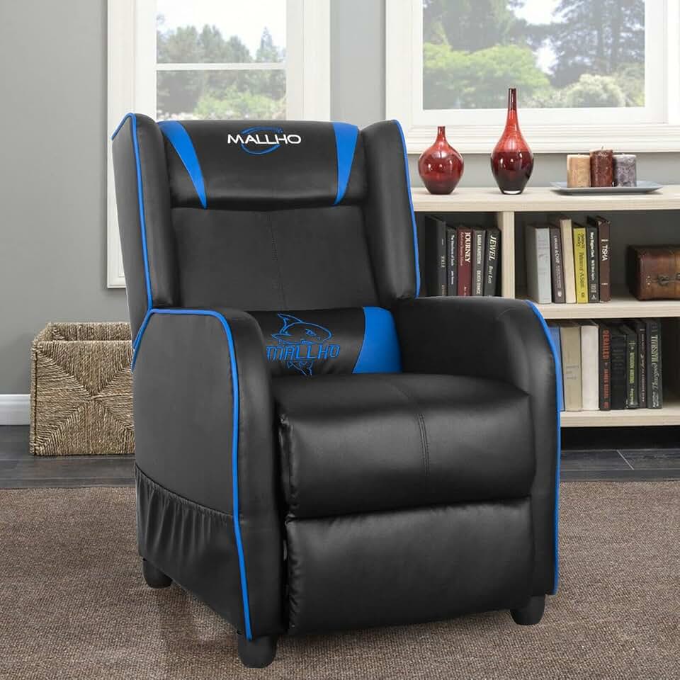 Luxurious Comfort, Heavy Duty Components, Reliable Functional Gaming Recliner Chair PU Leather Vibratory Ergonomic Lounge 8 Function 3 Intensity Levels Sturdy Recliner Sofa Wider Curved Armrests, Blue