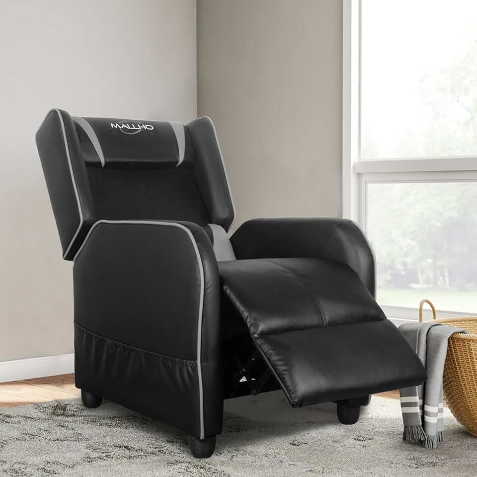 Luxurious Comfort, Heavy Duty Components, Reliable Functional Gaming Recliner Chair PU Leather Vibratory Ergonomic Lounge 8 Function 3 Intensity Levels Sturdy Recliner Sofa Wider Curved Armrests, Grey