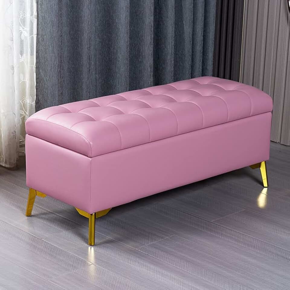 Footstool Shoe Stool Sofa Bench with e Artificial Leather Large Cushion Bearing 150kg (Color : Pink)