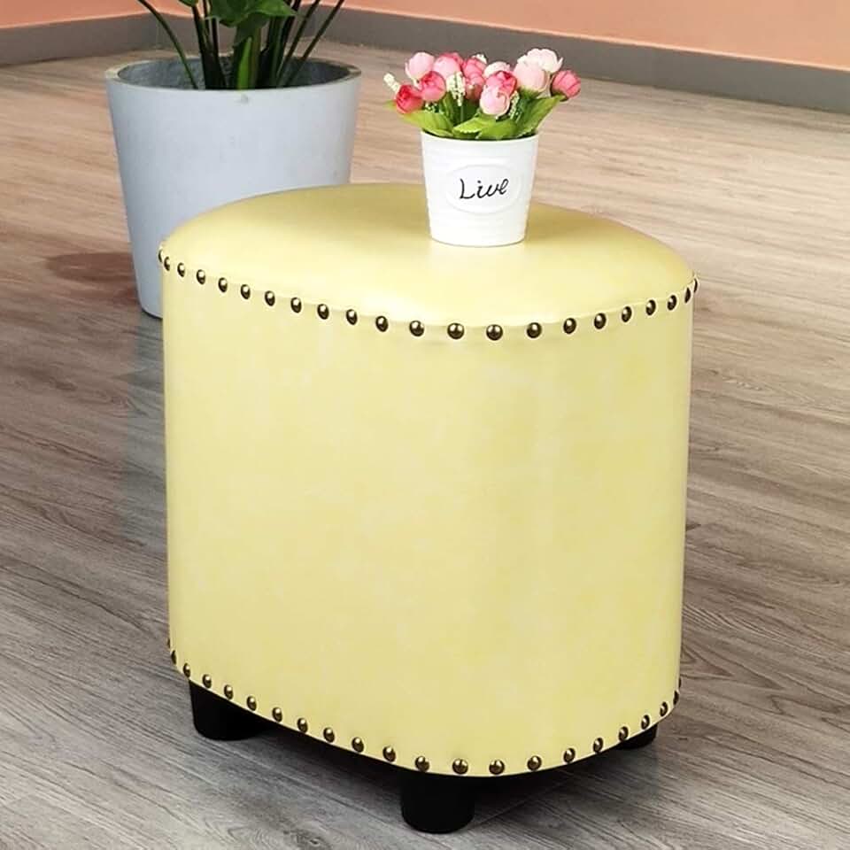 Faux Leather Footstool Foot Rest Ottoman,Makeup Dresser Sofa Tea Coffee Table Rivets Stool Pouffe Seat Bench Chair-Yellow 40x30x40cm