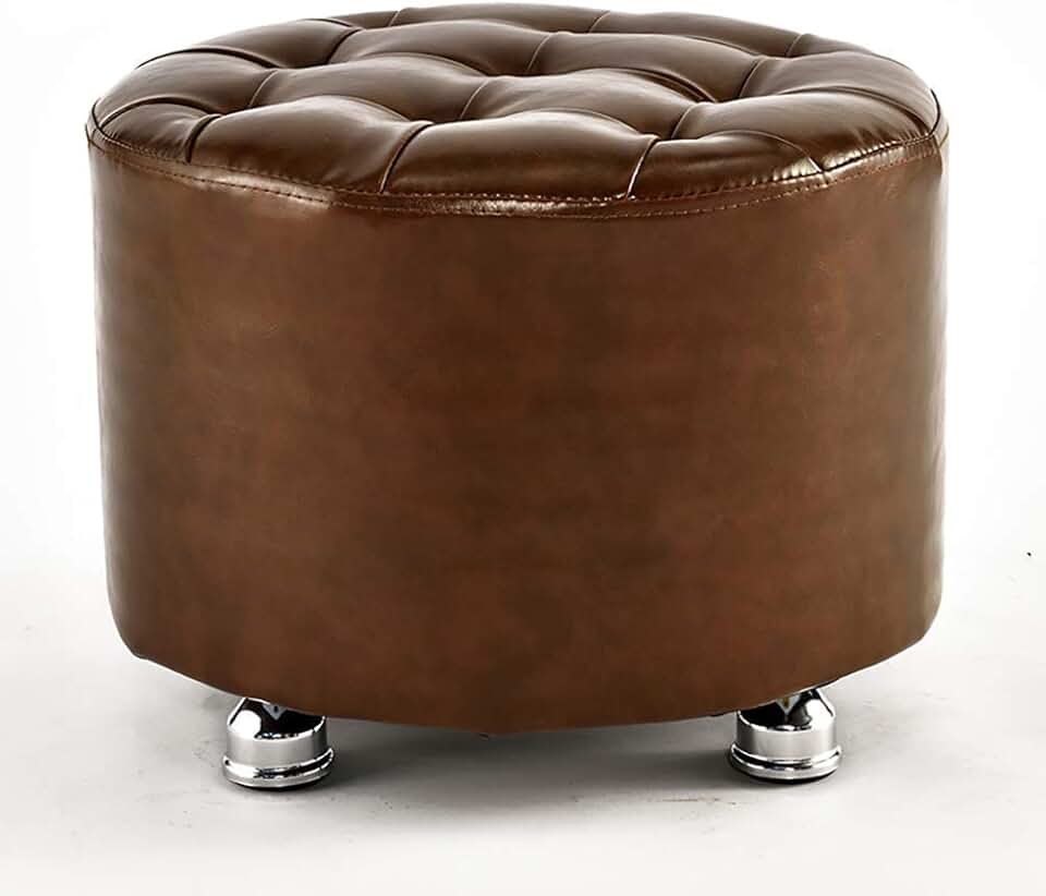 Footstool Ottoman Pouf, Round Foot Rest Stool, Portable Makeup Coffee Table Chair Pouf Foot Stool with Faux Leather - Low Sofa Stool 40x 30 Cm