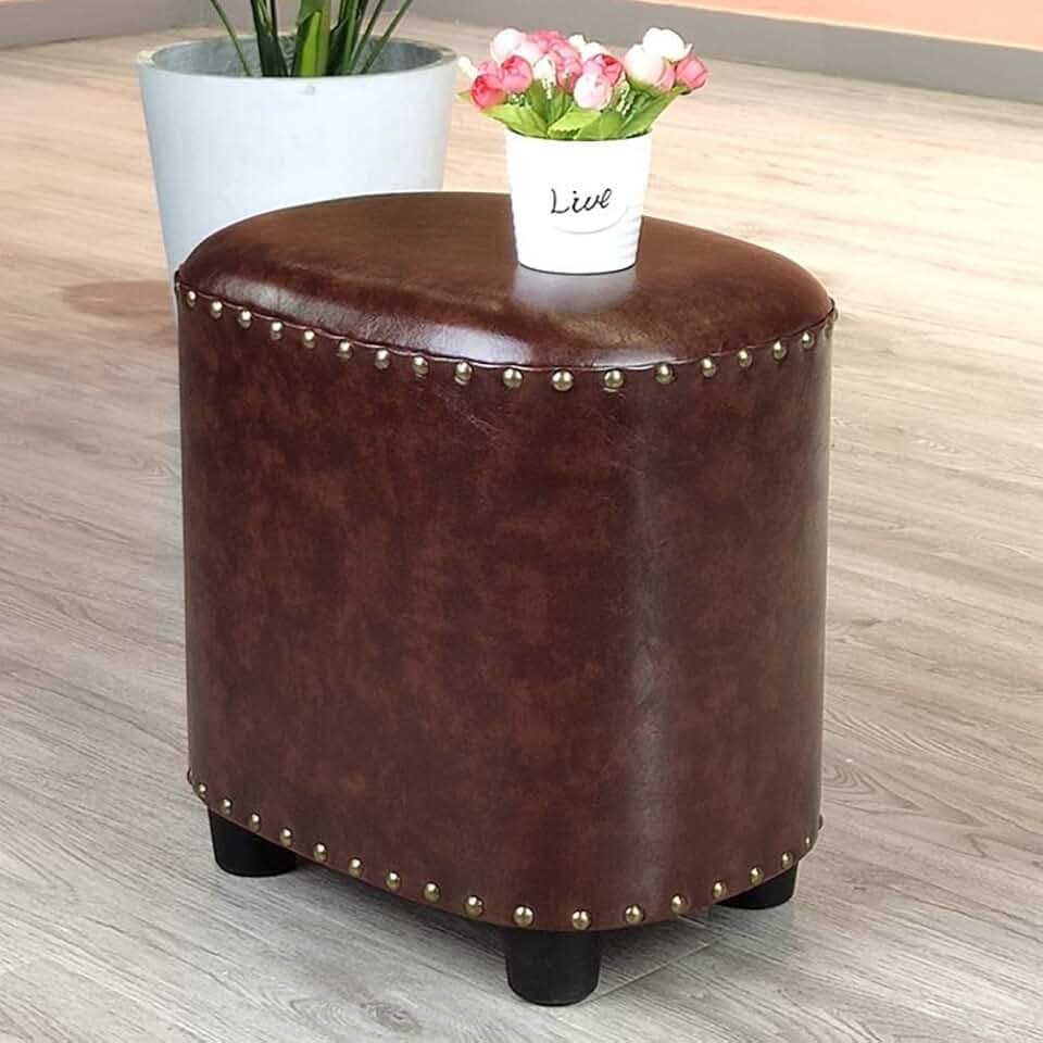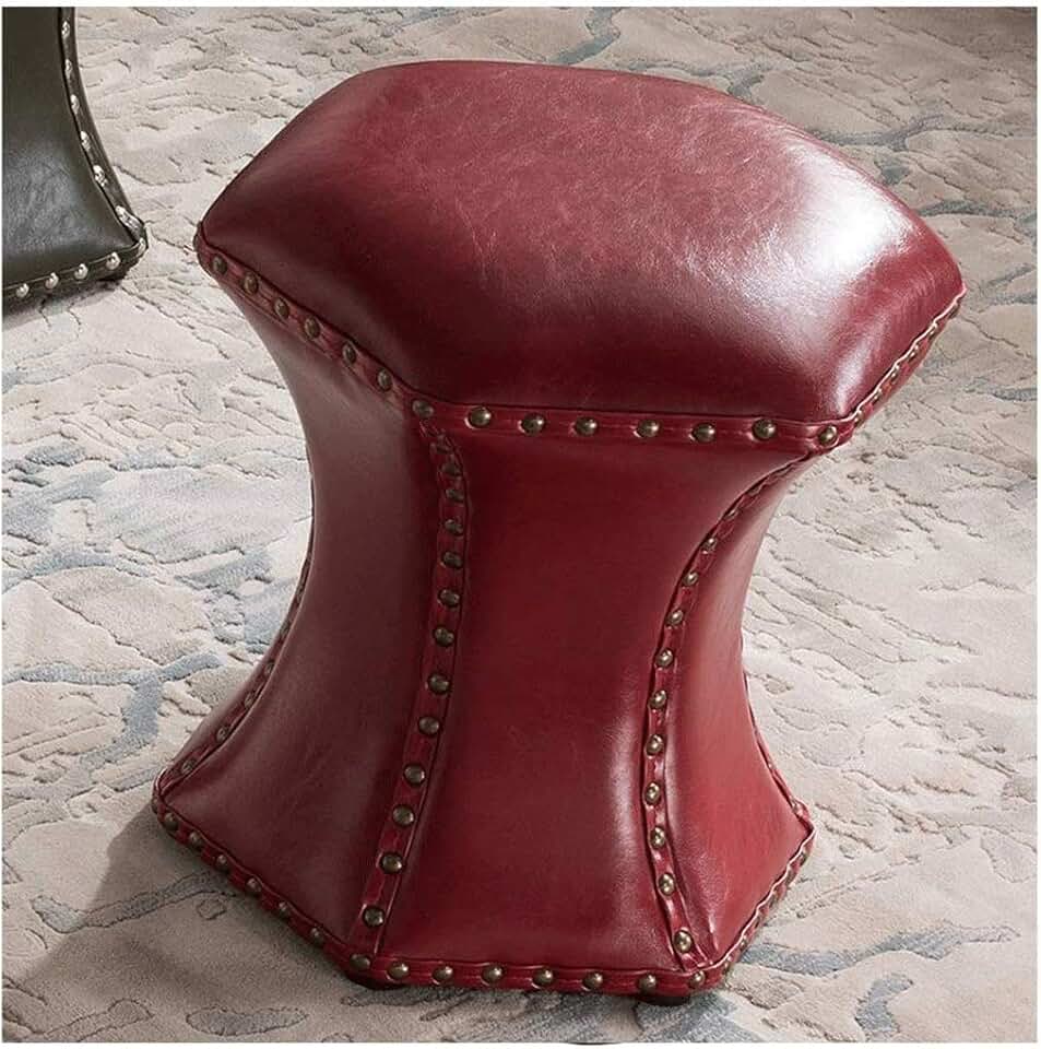 Sofa Stool, American Solid Wood Home Wear Shoes Leather Stool Sofa Living Room Foot Stool Corner Leather Stool Hexagonal Stool (Color : Red)