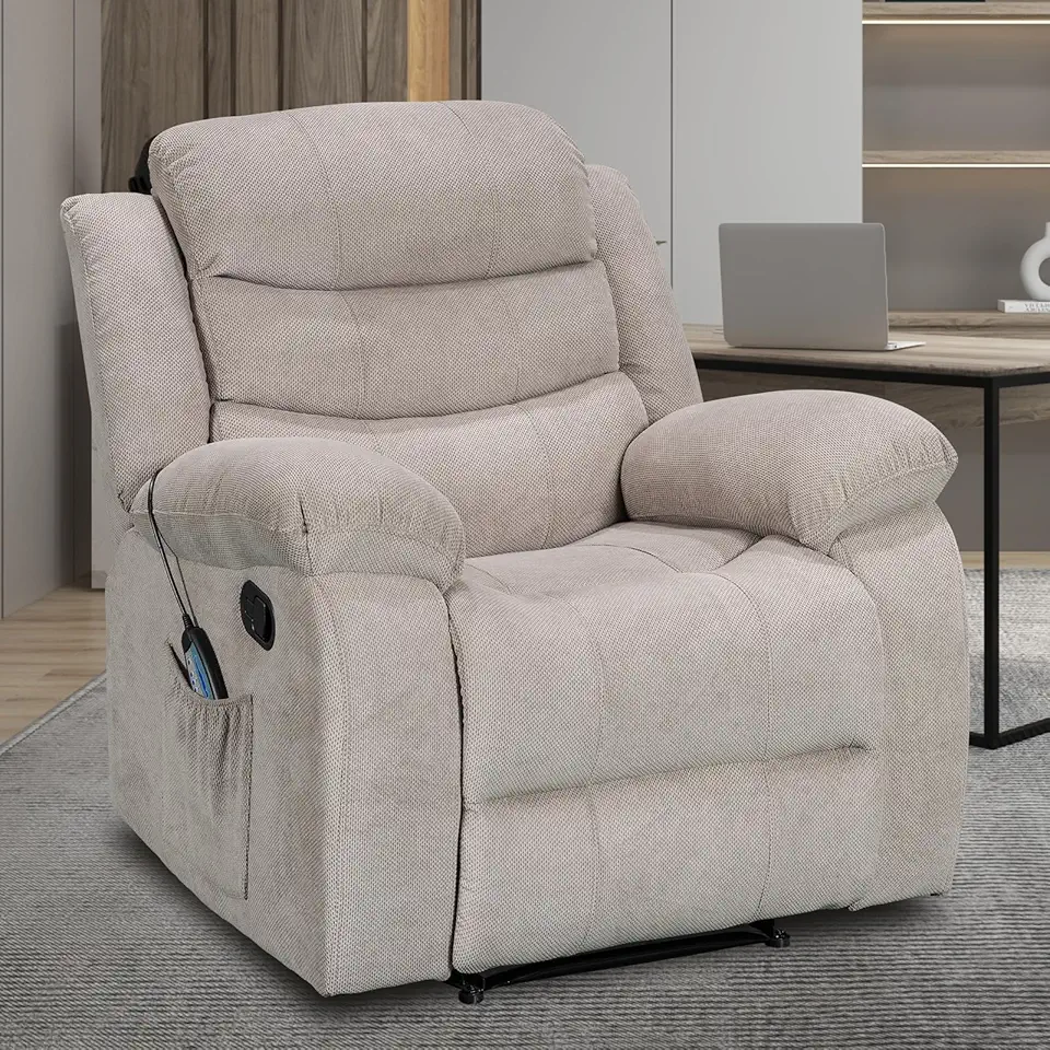 Recliner Chair, Massage and Heating Recliners with Remote Control, 37" Width Reclining Chair Sofa for Living Room, Bedroom, Manual Recliner Chairs for Reading/Nap/Relax/Casual (JoJo, Khaki)