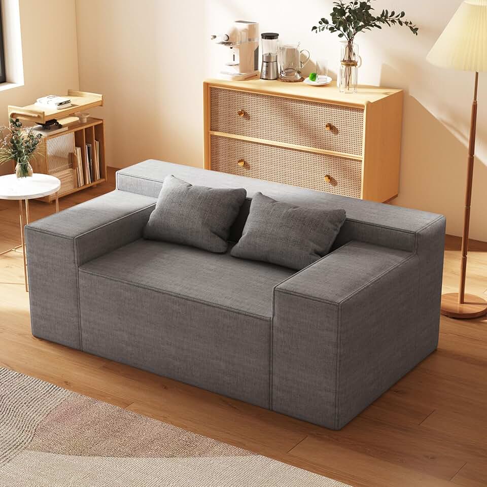 Small Modern Loveseat Sofa, Hybrid Sofa Couch in a Box, No Assembly Needed, Sleeper Sofa with 2 Pillows, Cat-Scratch Resistant Linen,Small Sofa for for Small Space, Living Room, Bedroom,Grey