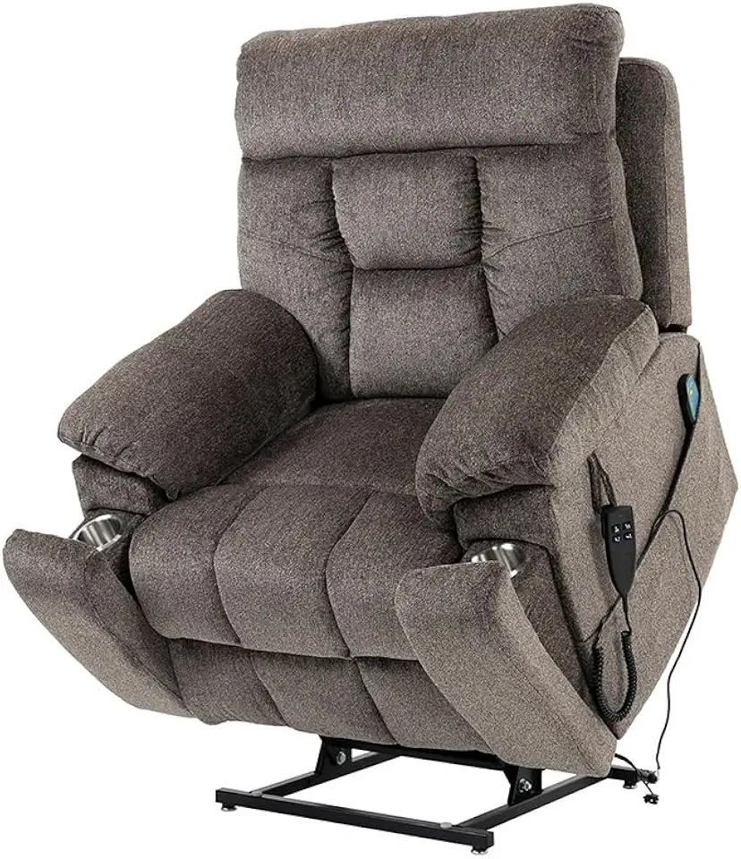 Grey Electric Lift Recliner Chair, Modern Linen Fabric Recliner Sofa Lift Chairs, Lounge Sofa Home Theater Seating with 2 Remote Control, 2 Side Pockets and USB Ports for Living Room, Bedroom Office