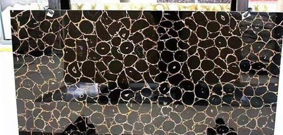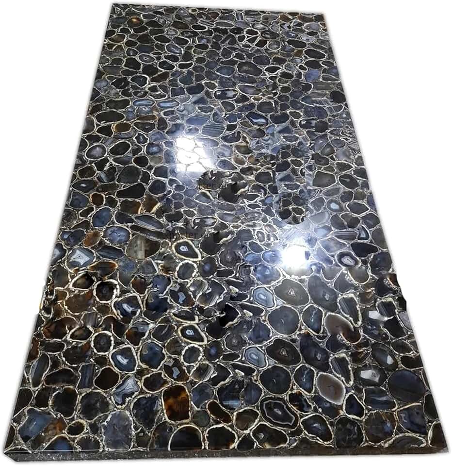 Rectangle Black Agate Sofa Table Top Resin Coffee Table Top for Office Conference Room Decor 24 x 48 Inches