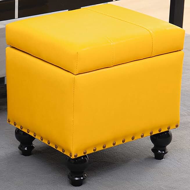 Square Storage Ottoman Leather Footrest with Rivet Decoration,Light Luxury Sofa Low Footstool for Living Room Bedroom,Stackable Padded Seat-L-15.7 * 15.7 * 13.4inch