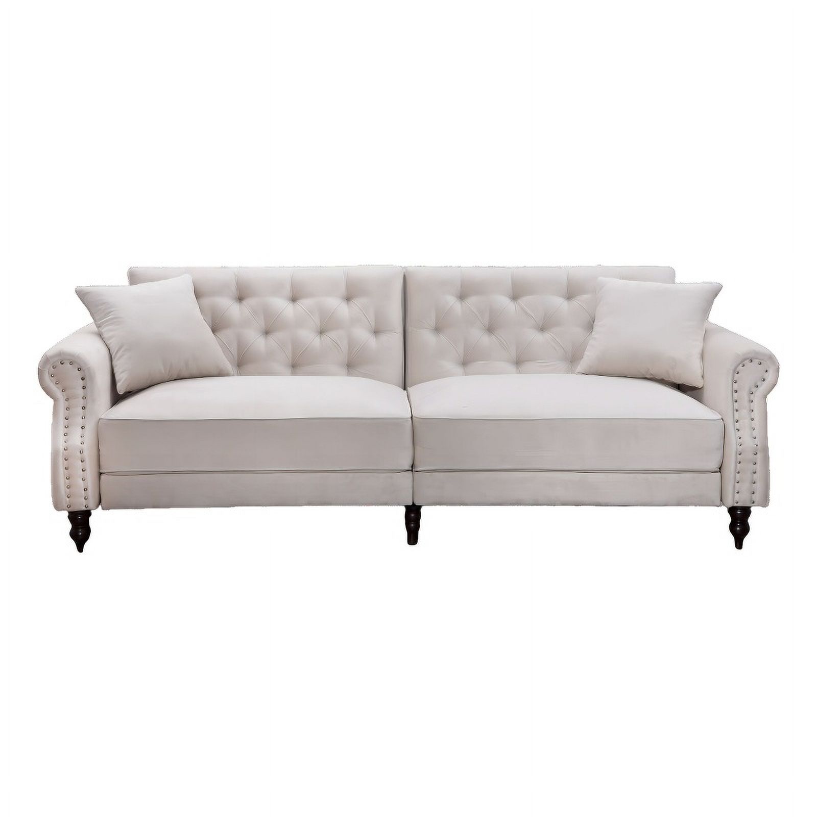 87.8'' Convertible Cream Velvet Sofa Bed Sleeper