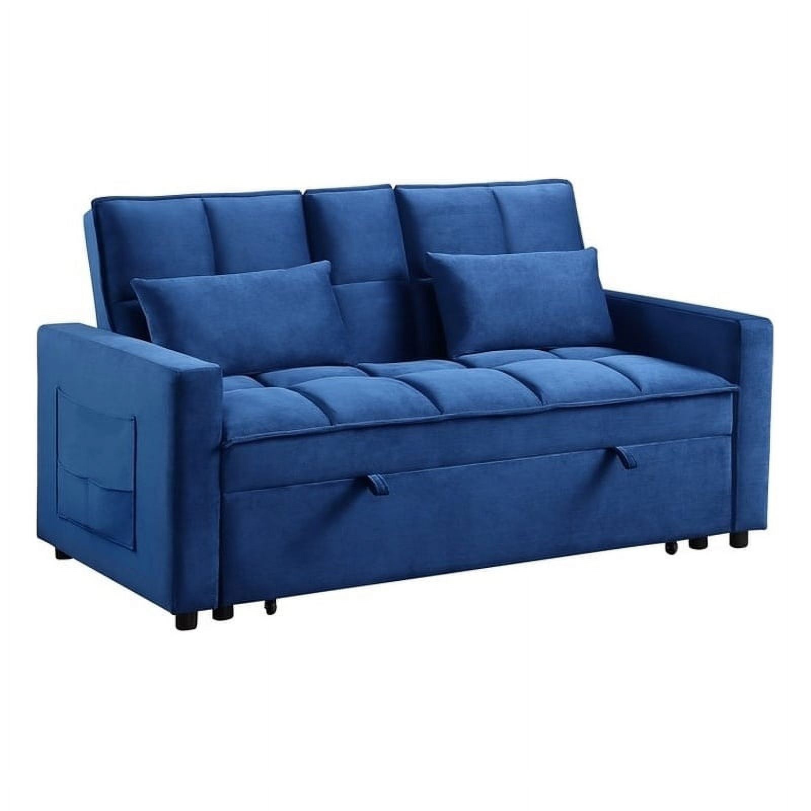 Devion Furniture Modern Velvet Sleeper Sofa with Cup Holder in Blue