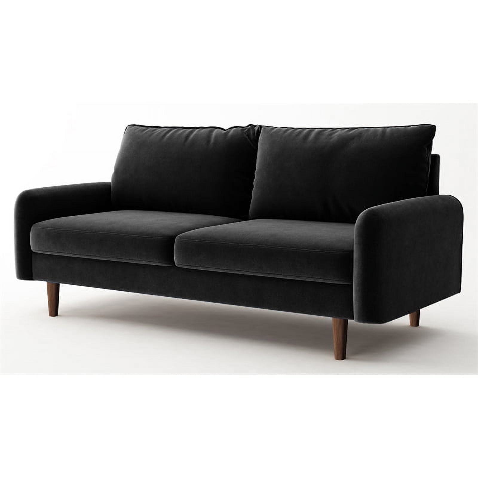 Pemberly Row 70" Round Arm Upholstered Modern Velvet Sofa in Black