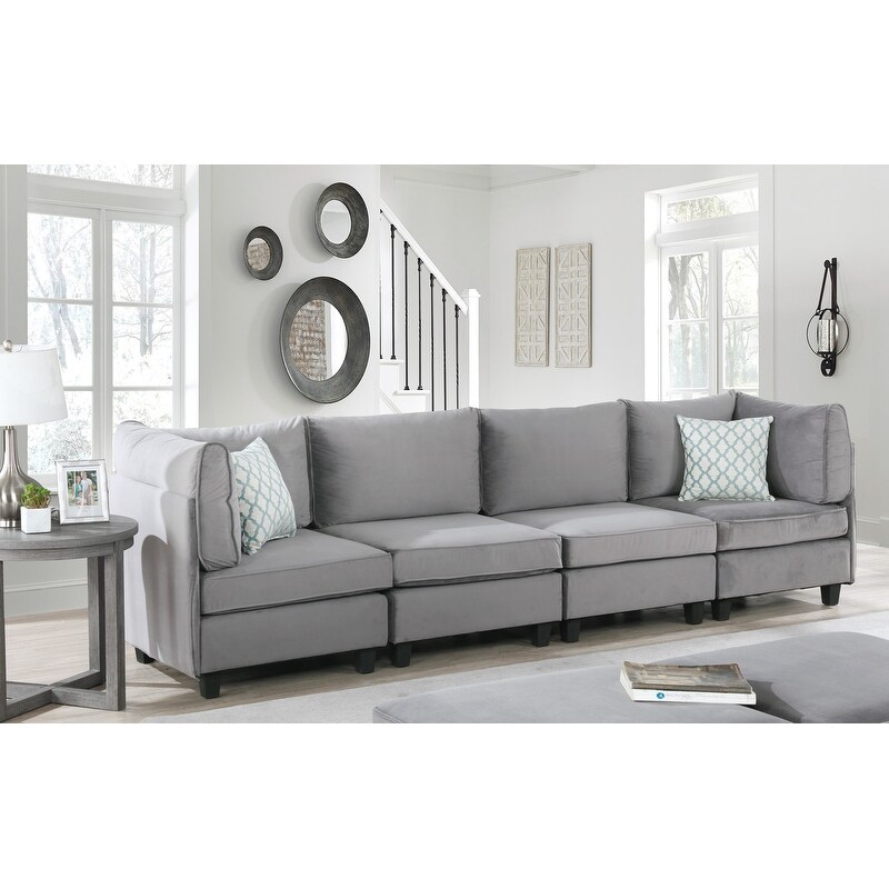 Zelmira Gray Velvet 4 Piece Sofa Fabric Couch Seats 4